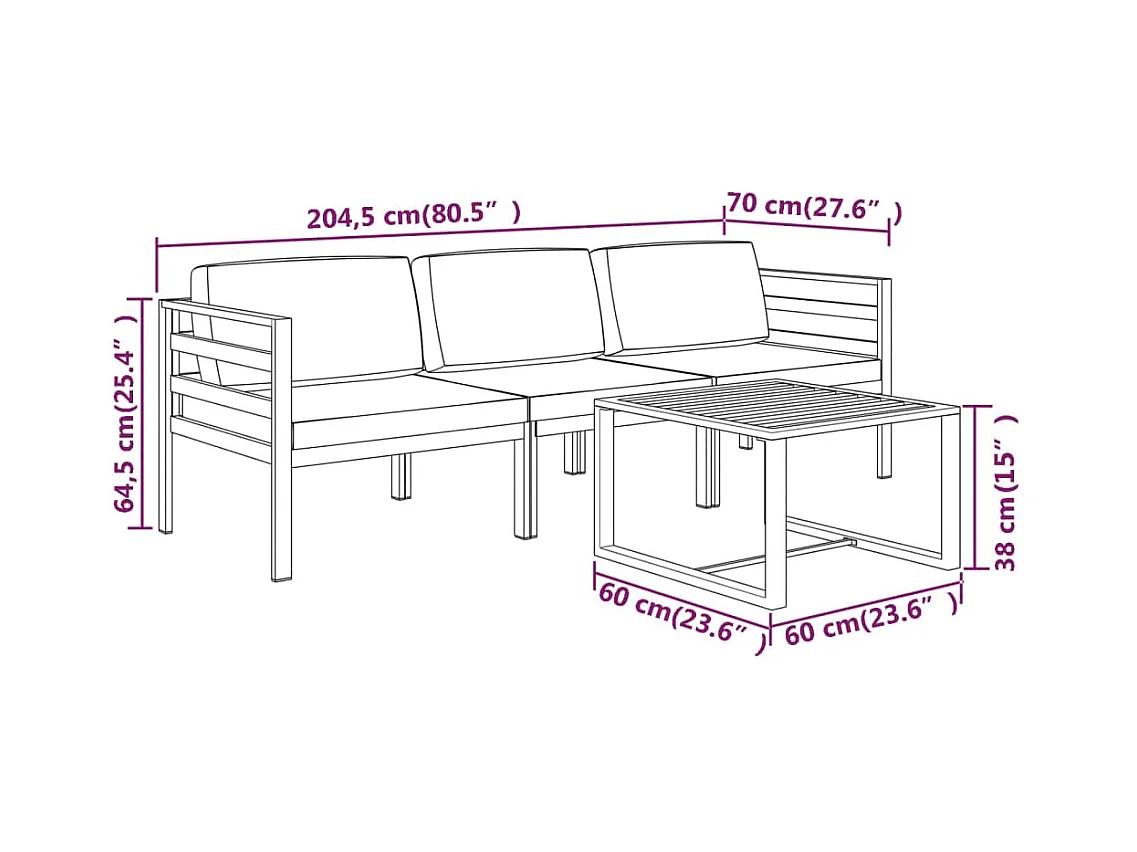 4 pcs conjunto lounge jardim com almofadões alumínio antracite