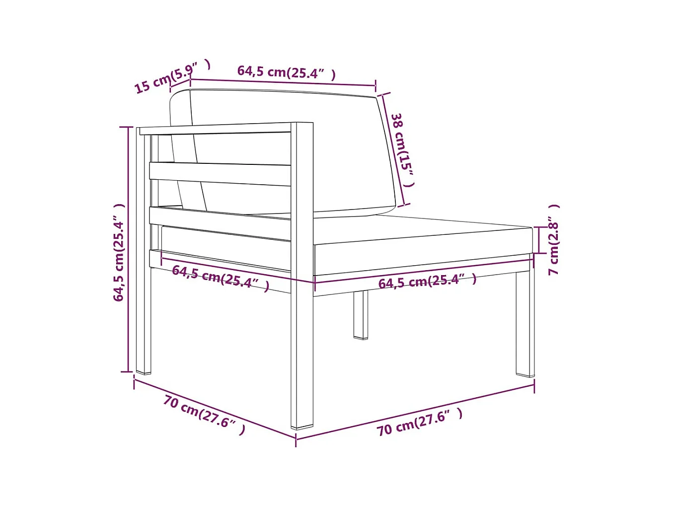 7 pcs conjunto lounge jardim com almofadões alumínio antracite