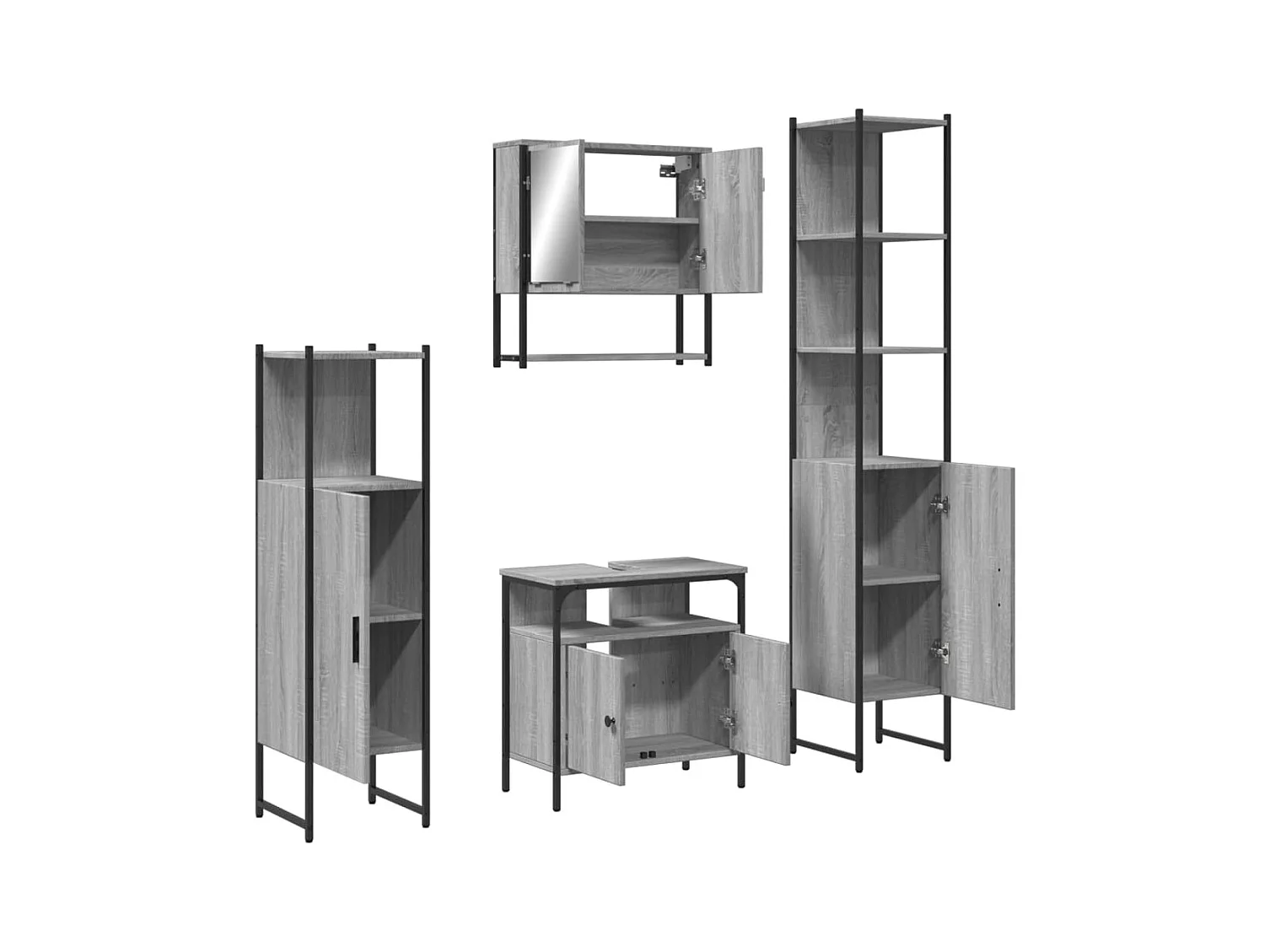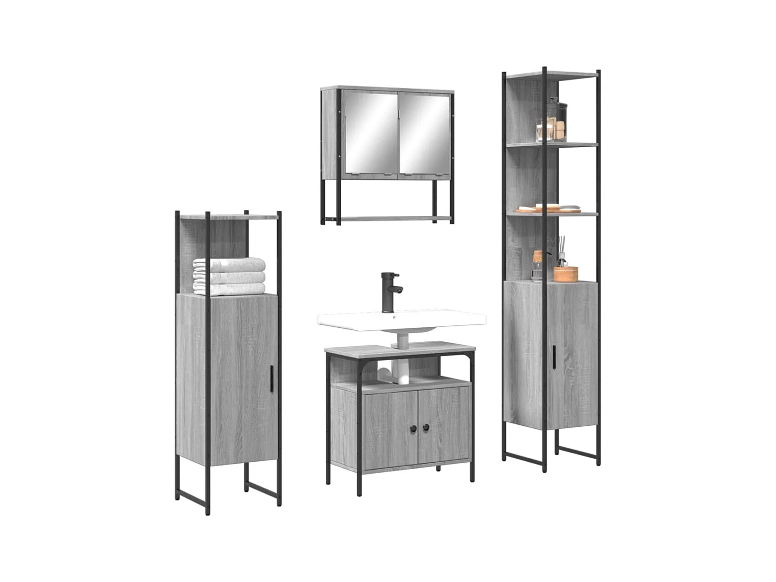 4 pcs Conjunto móveis casa de banho madeira proc. cinza sonoma PT606364