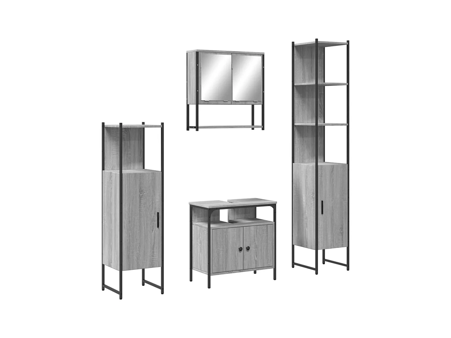 4 pcs Conjunto móveis casa de banho madeira proc. cinza sonoma PT983874