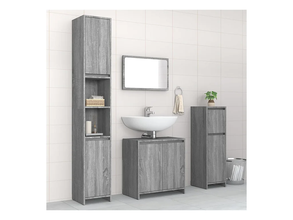 3 pcs Conjunto móveis casa de banho madeira proc. cinza sonoma PT871443