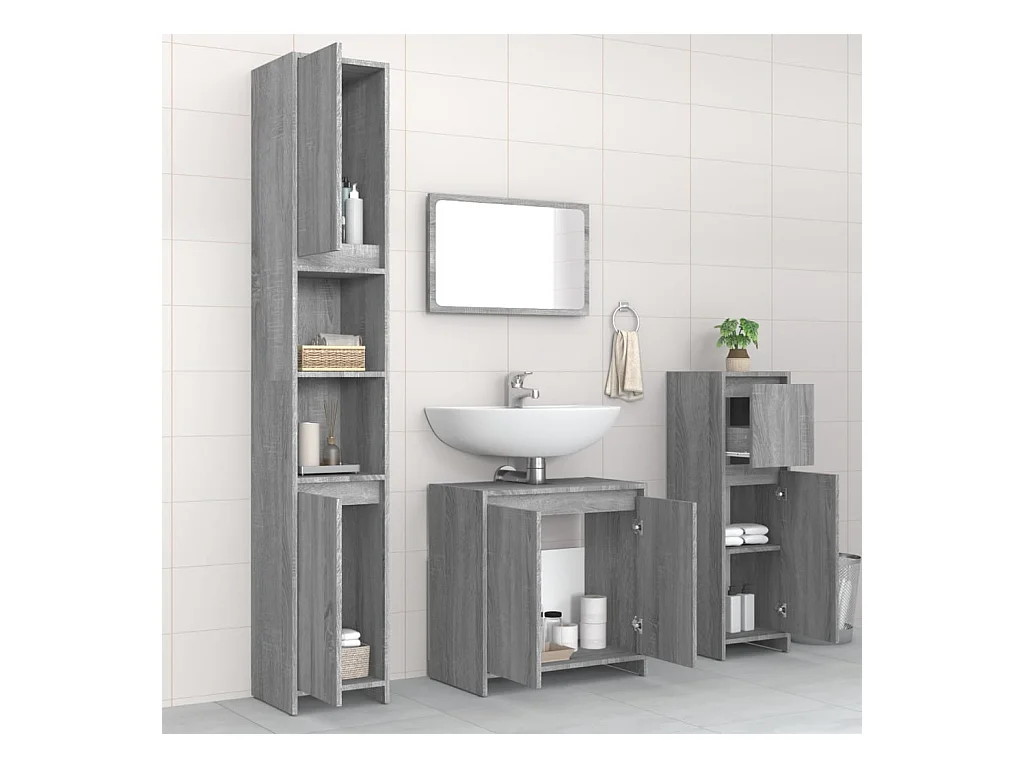 4 pcs Conjunto móveis casa de banho madeira proc. cinza sonoma PT983874