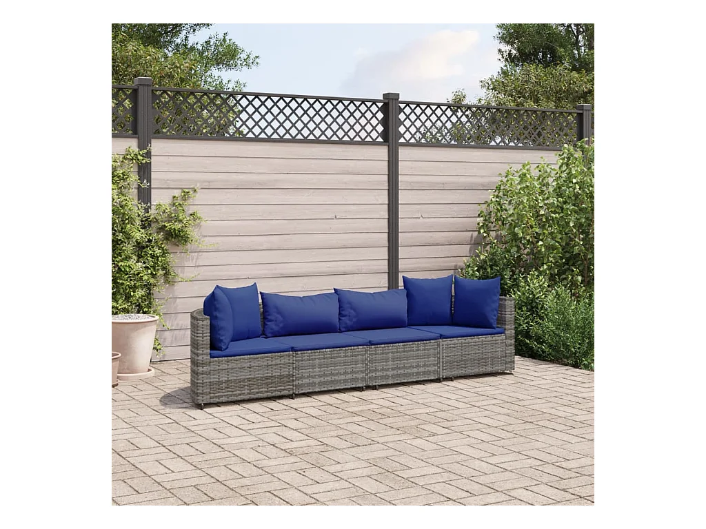 4 pcs conjunto sofás de jardim c/ almofadões vime PE cinzento