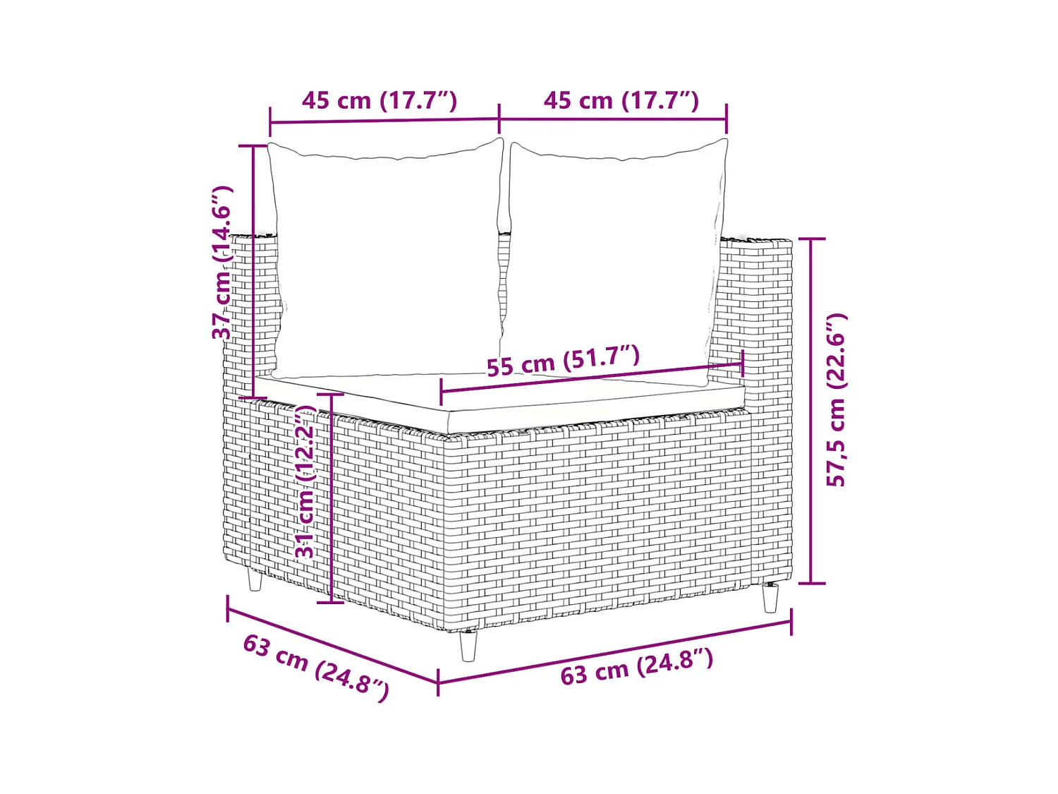 9 pcs conjunto sofás p/ jardim com almofadões vime PE cinzento