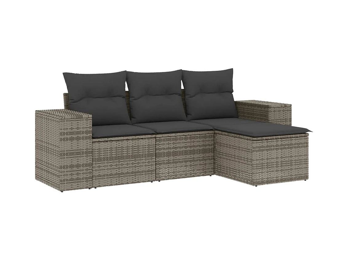 4 pcs conjunto sofás de jardim c/ almofadões vime PE cinzento PT786467