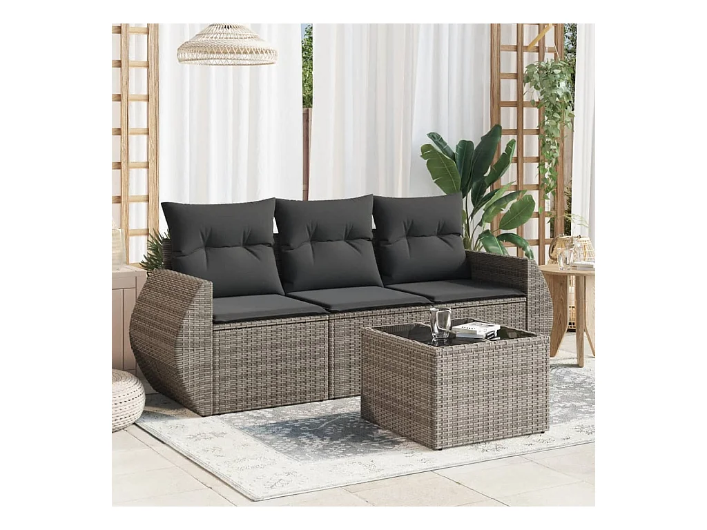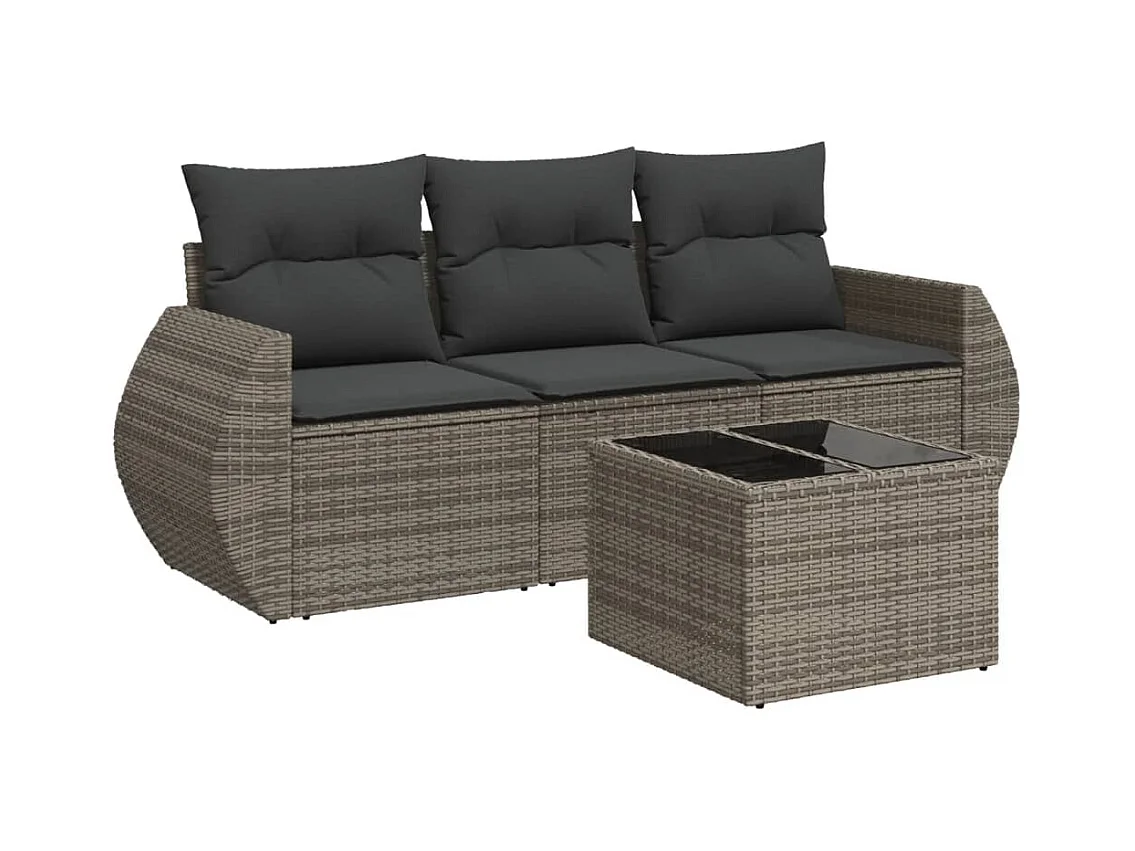 4 pcs conjunto sofás de jardim c/ almofadões vime PE cinzento PT798335