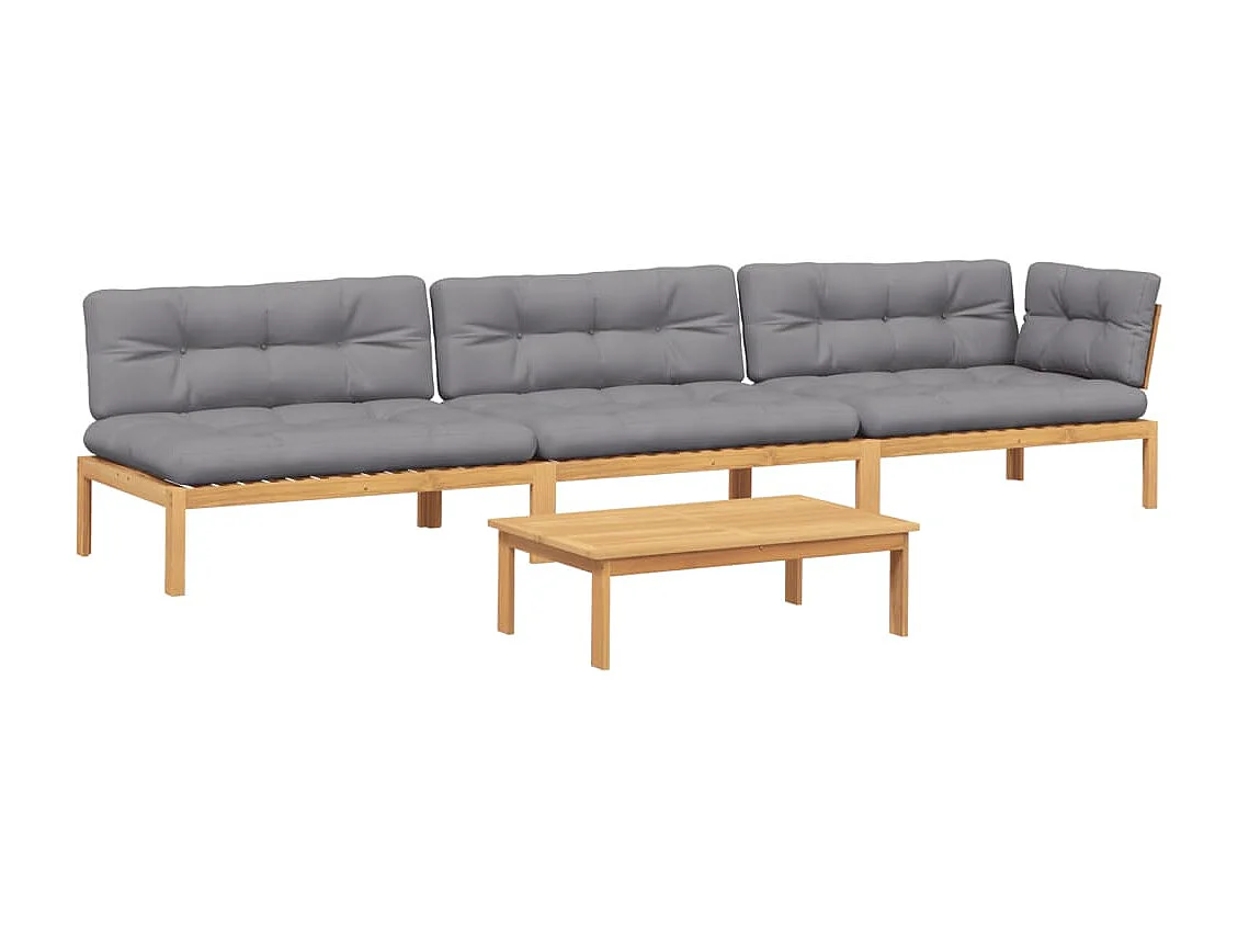 4 pcs móveis de paletes p/ jardim c/ almofadões acácia maciça