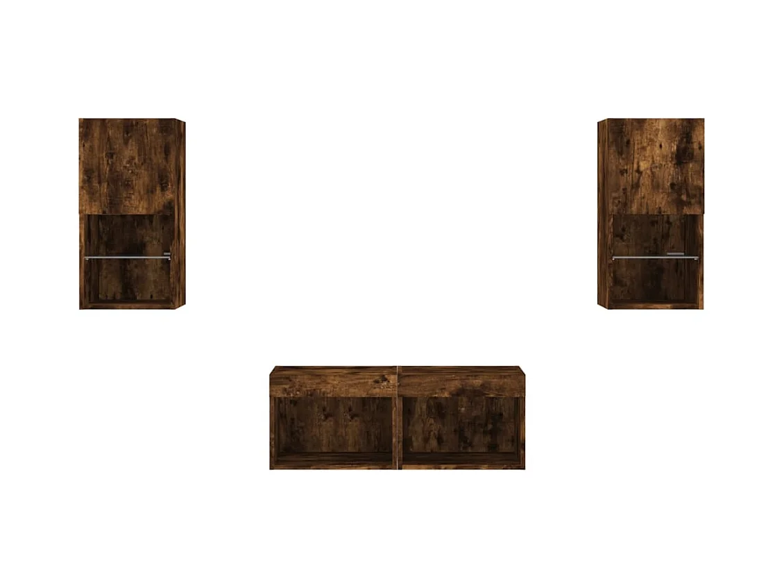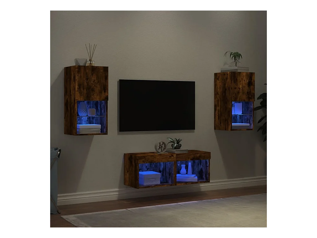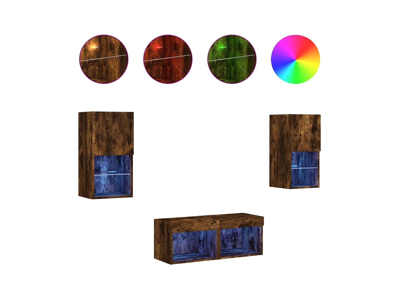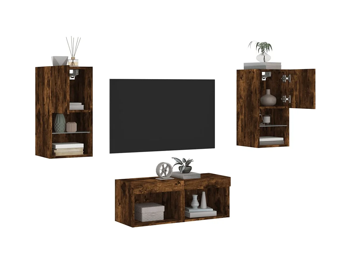 4 pcs móveis de parede para TV com luzes LED carvalho fumado