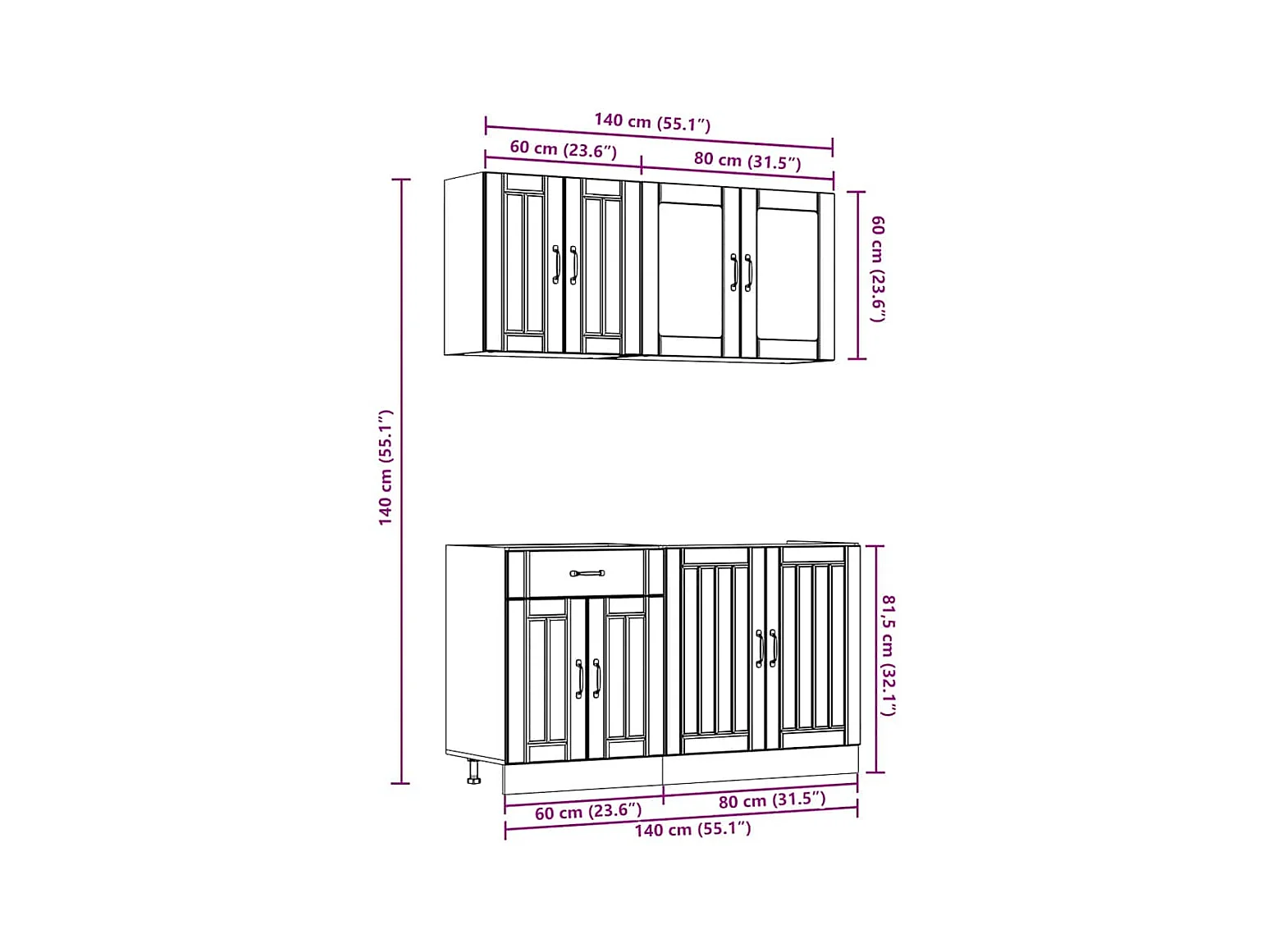 4 peças armário de cozinha conjunto Kalmar branco brilhante