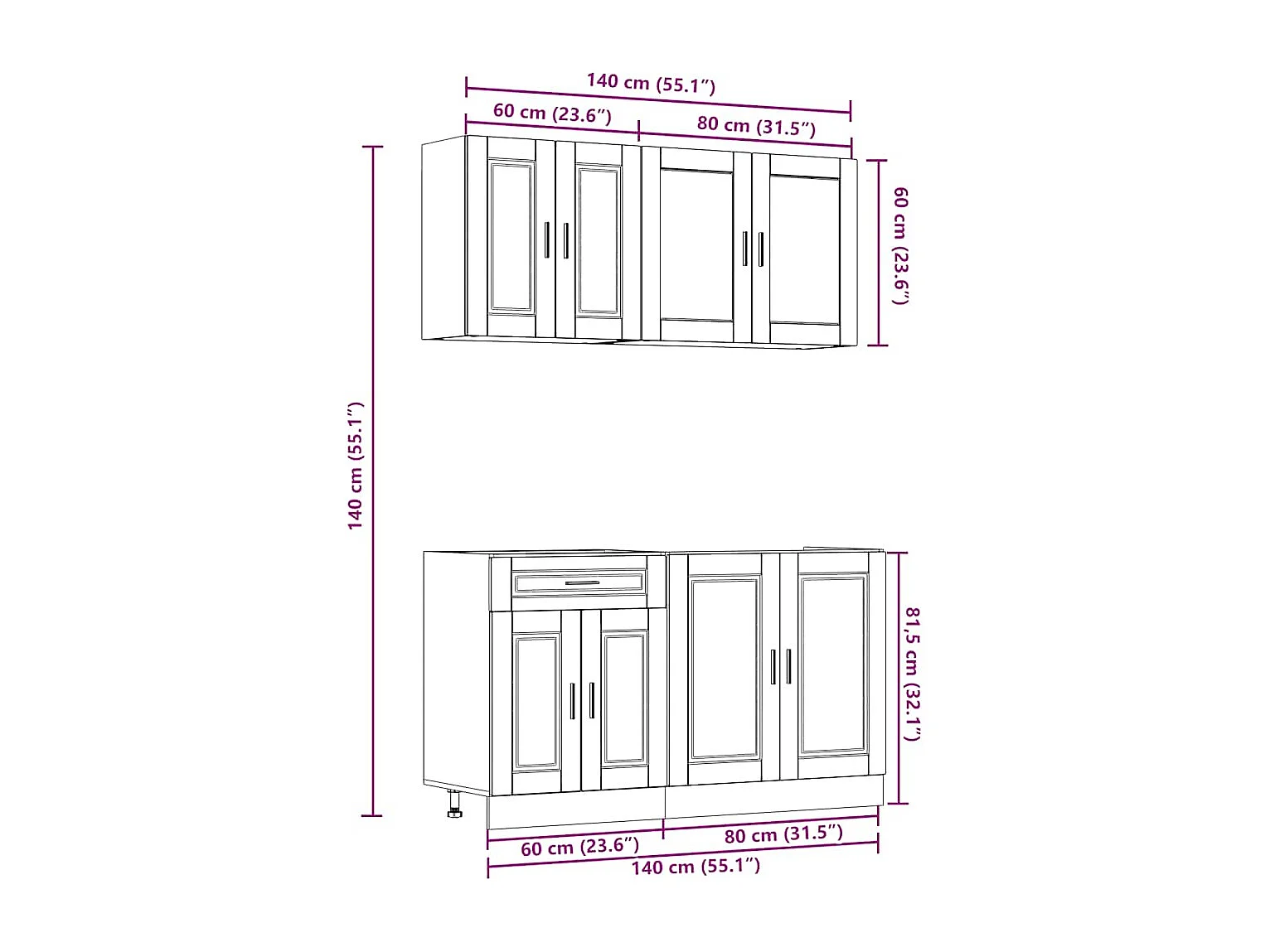 7 peças armário de cozinha conjunto Lucca sonoma carvalho
