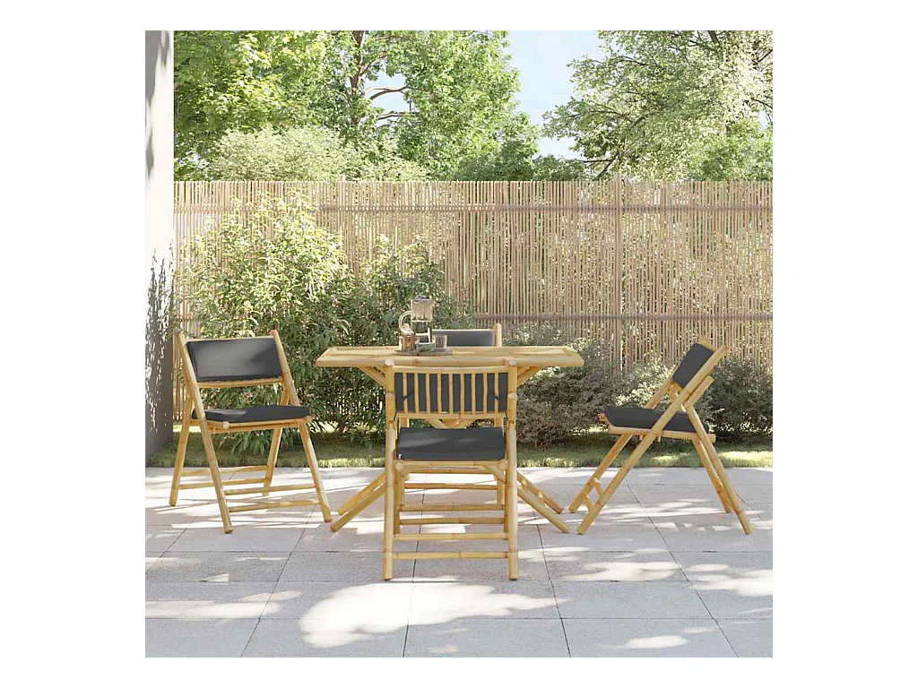 4 peças cadeiras bistrô dobráveis com almofadões cinza escuro bambu