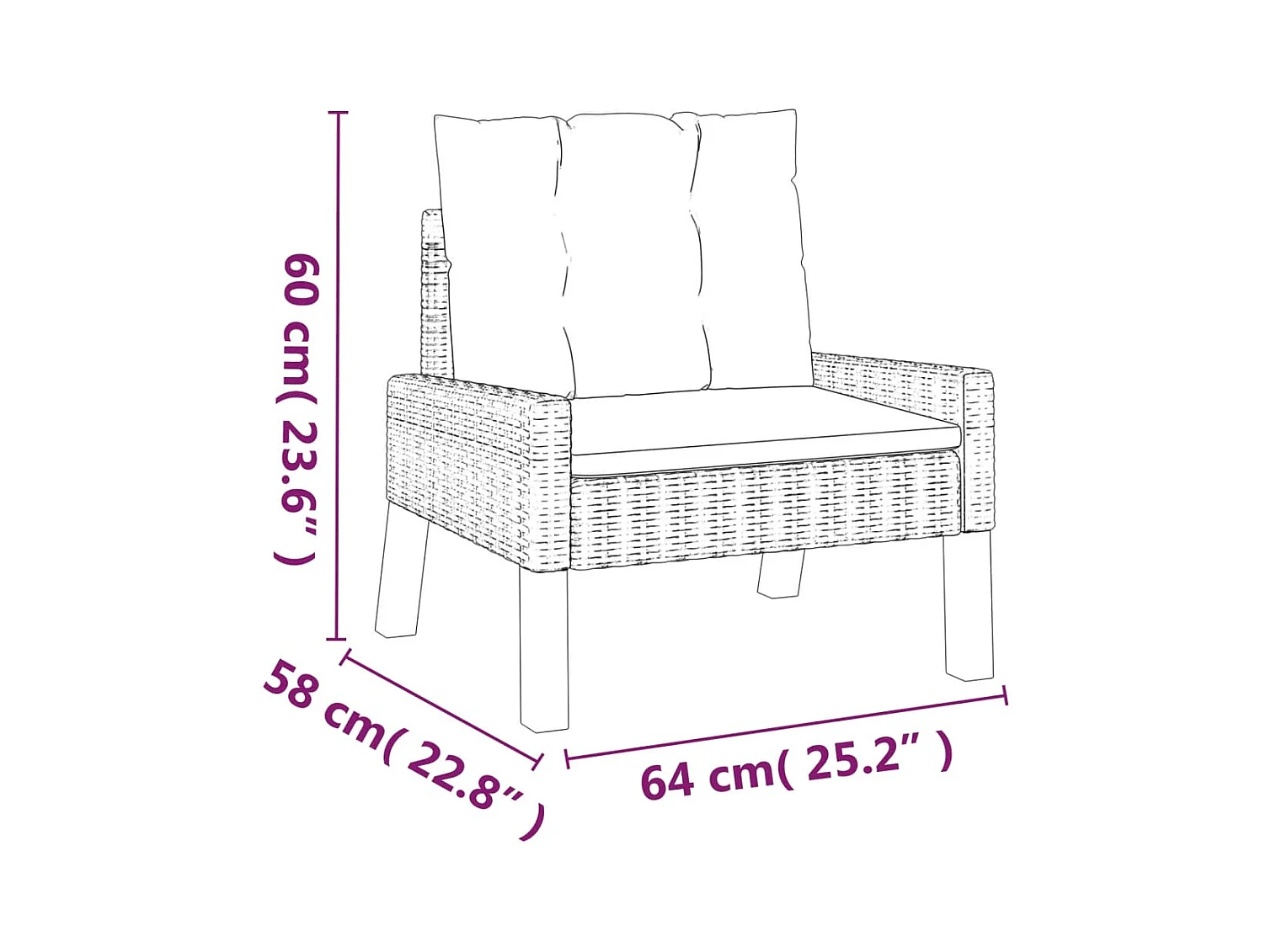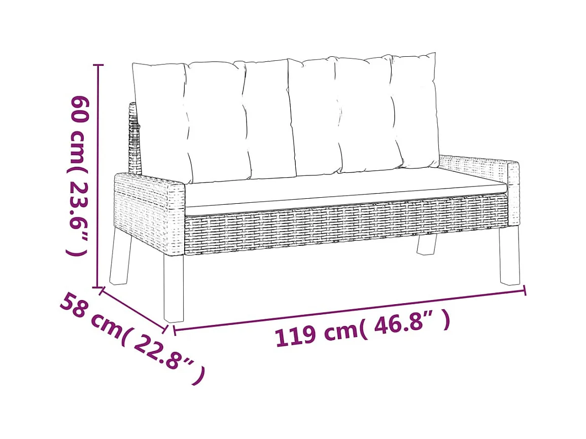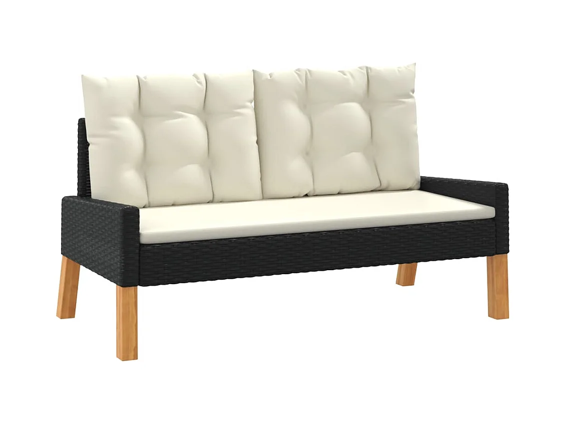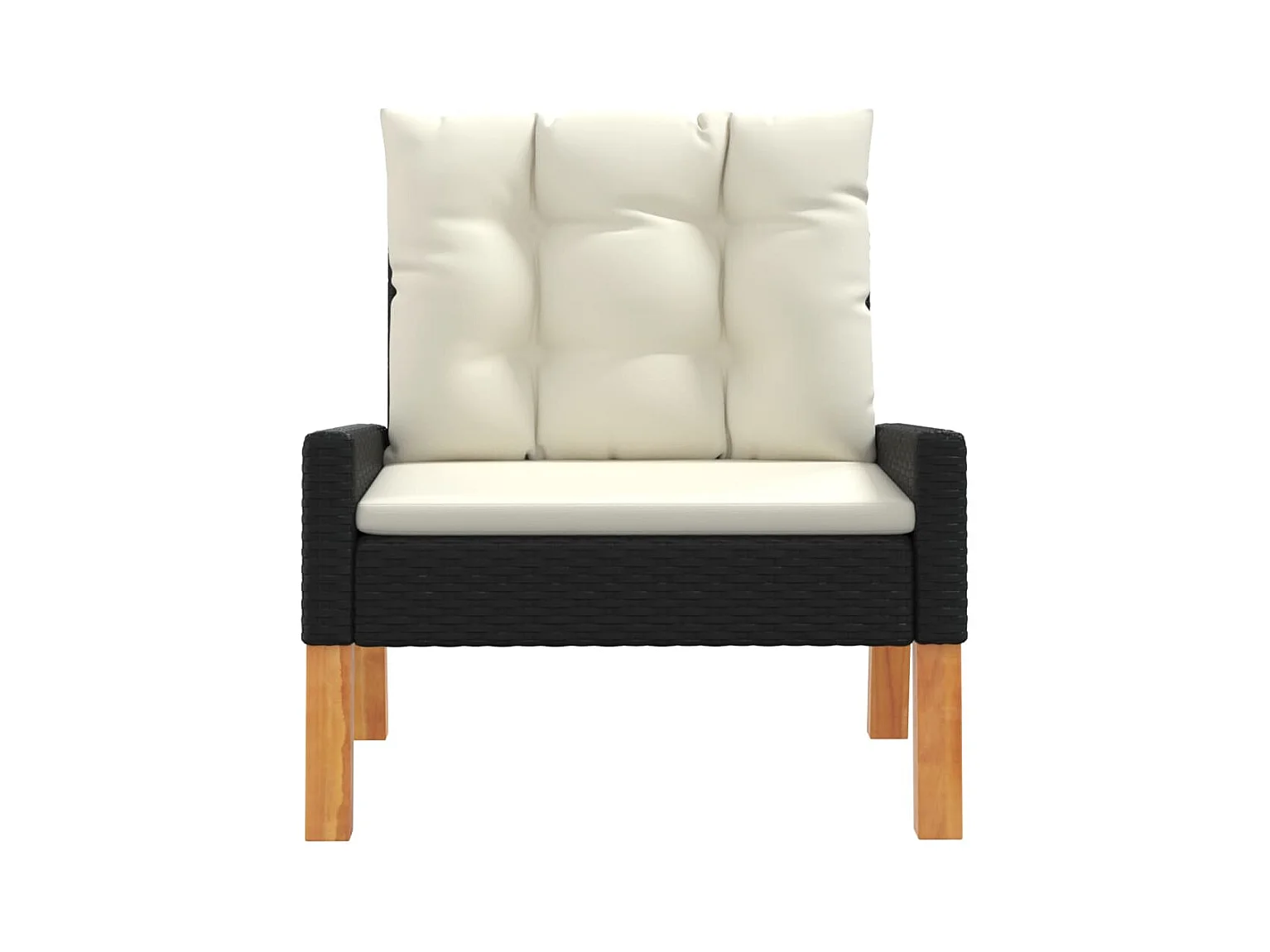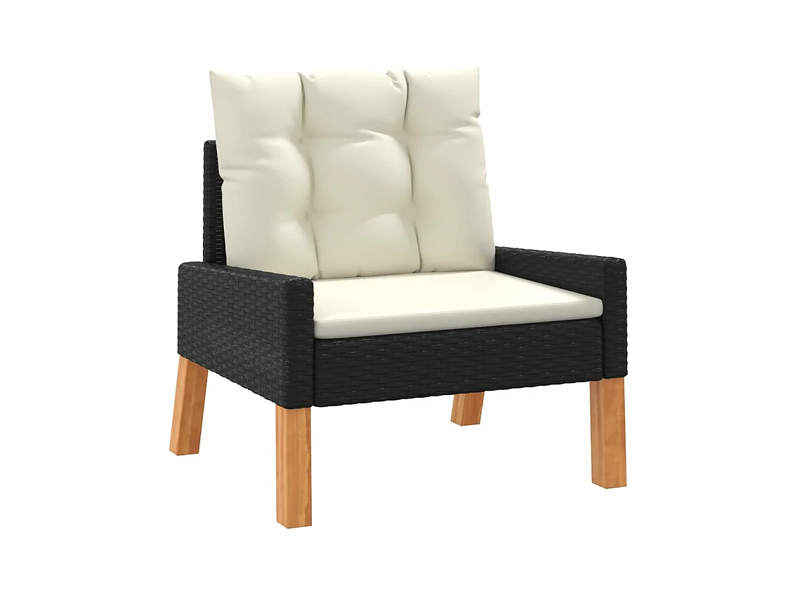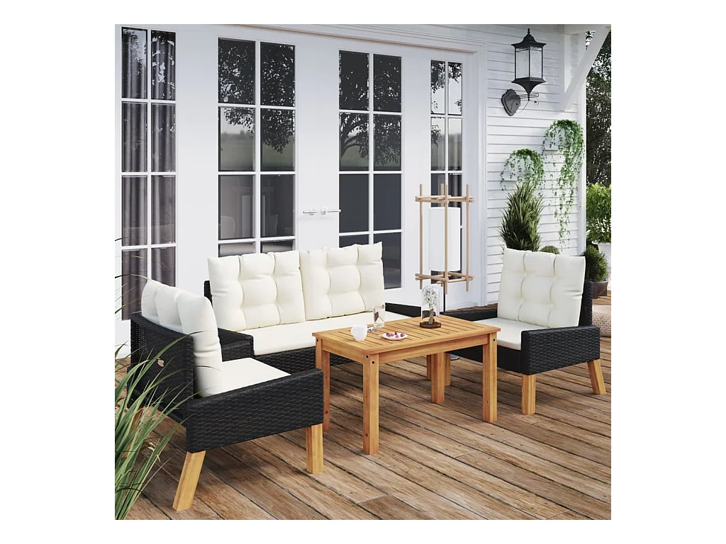 4 peças conj. lounge jardim c/ almofadões vime PE/madeira maciça