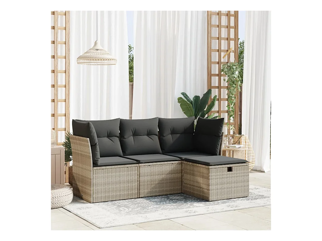 4 peças conj. sofás jardim com almofadões vime PE cinzento-claro