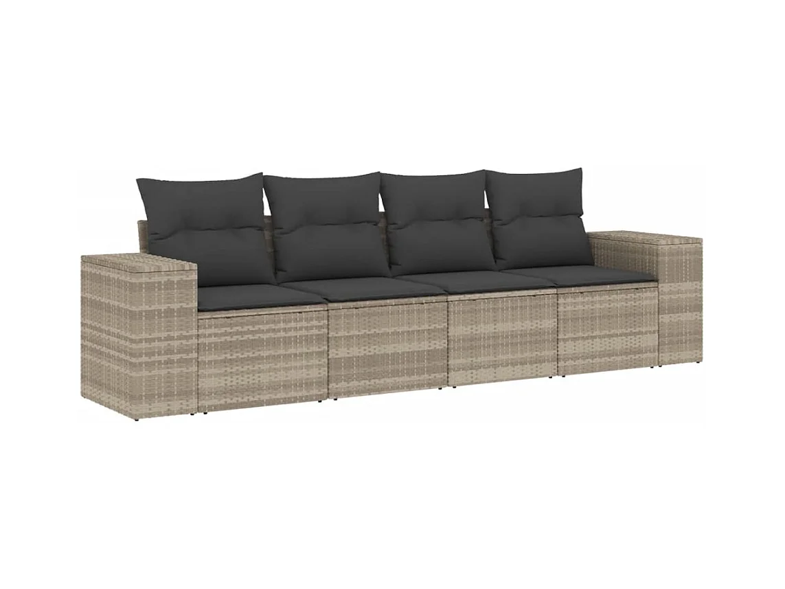 4 peças conj. sofás jardim com almofadões vime PE cinzento-claro