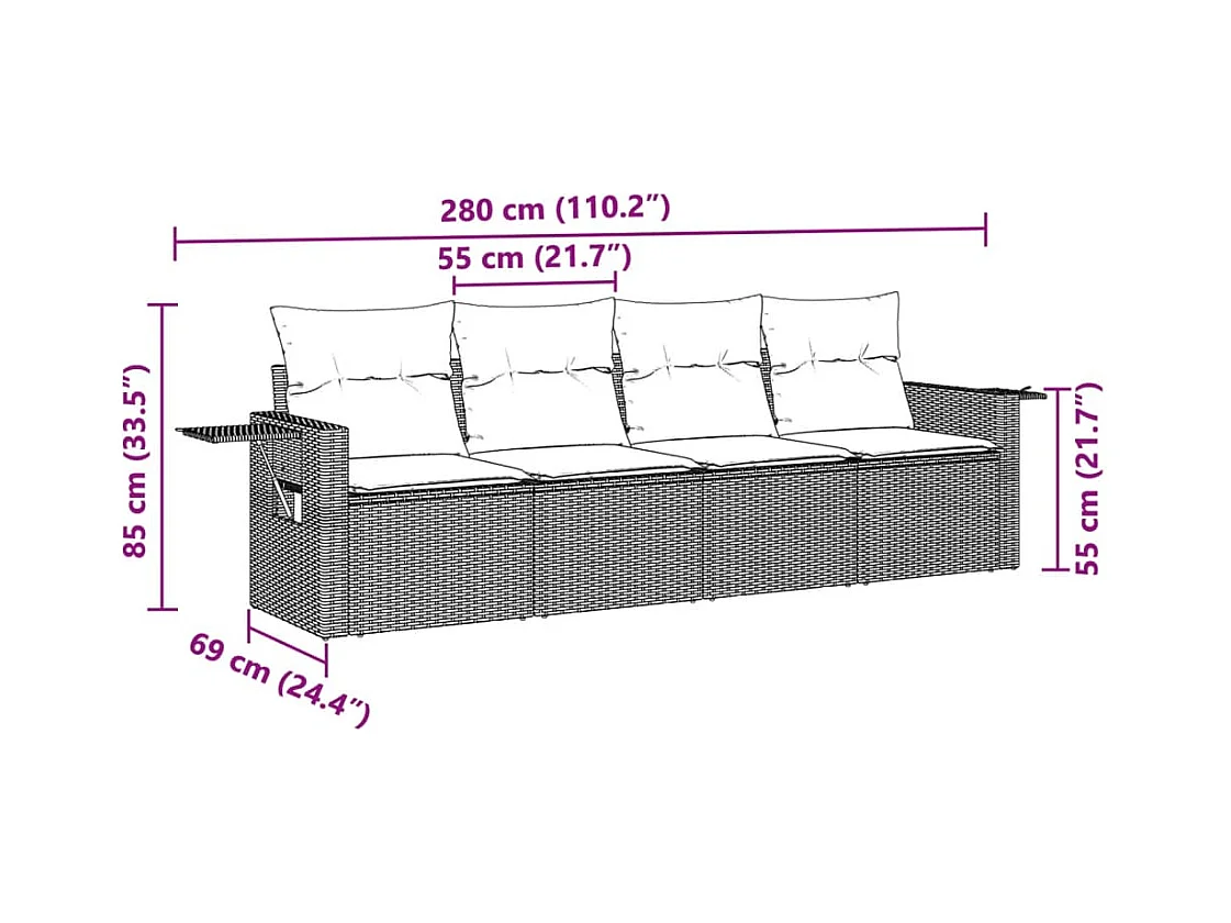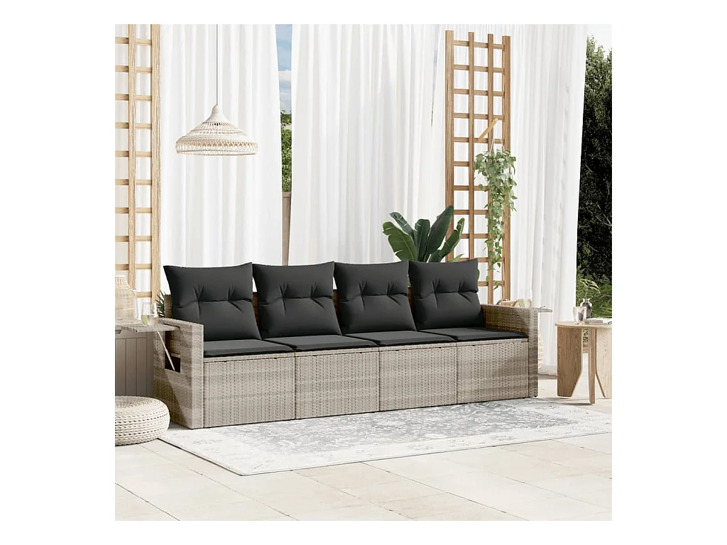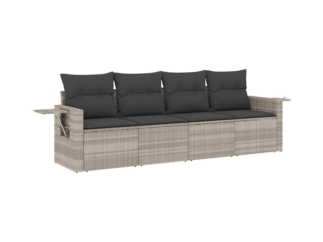 4 peças conj. sofás jardim com almofadões vime PE cinzento-claro