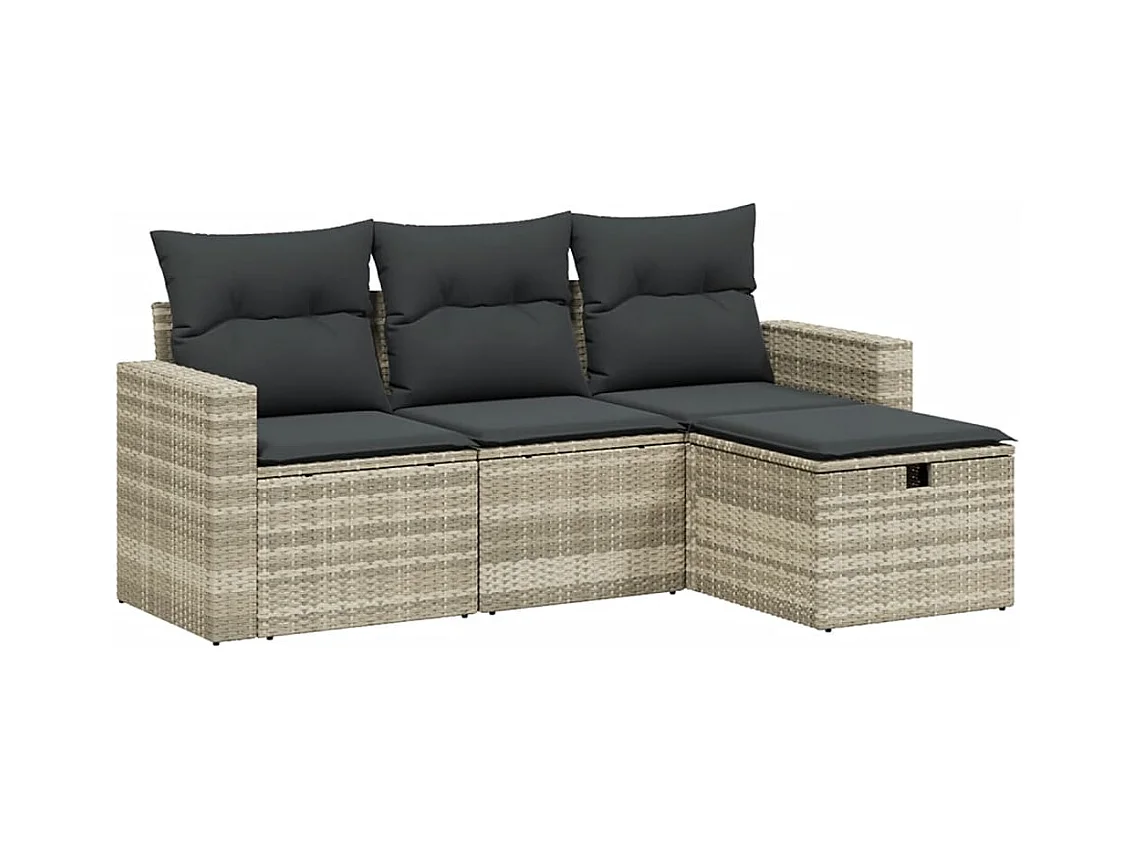 4 pcs conjunto lounge de jardim c/ almofadões vime PE cinzento PT36233