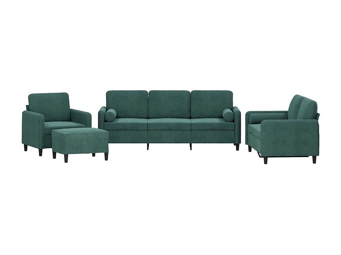 4 peças conjunto de sofás com almofadões veludo verde-escuro