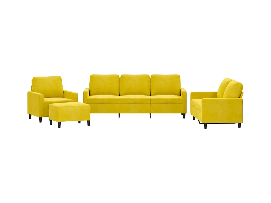 4 peças conjunto de sofás com almofadas veludo amarelo