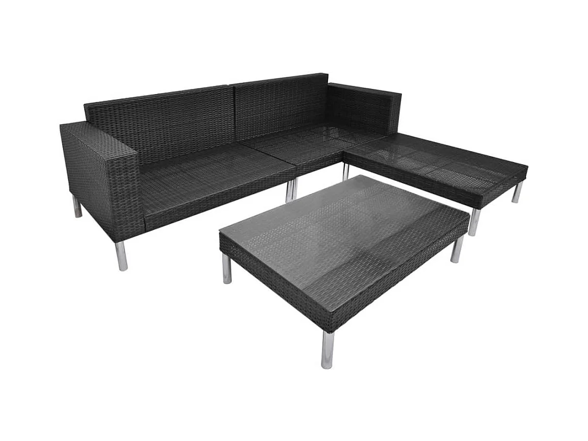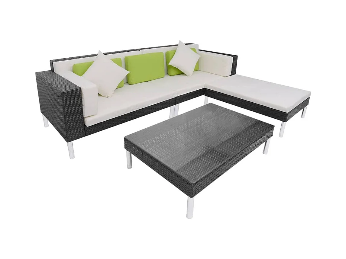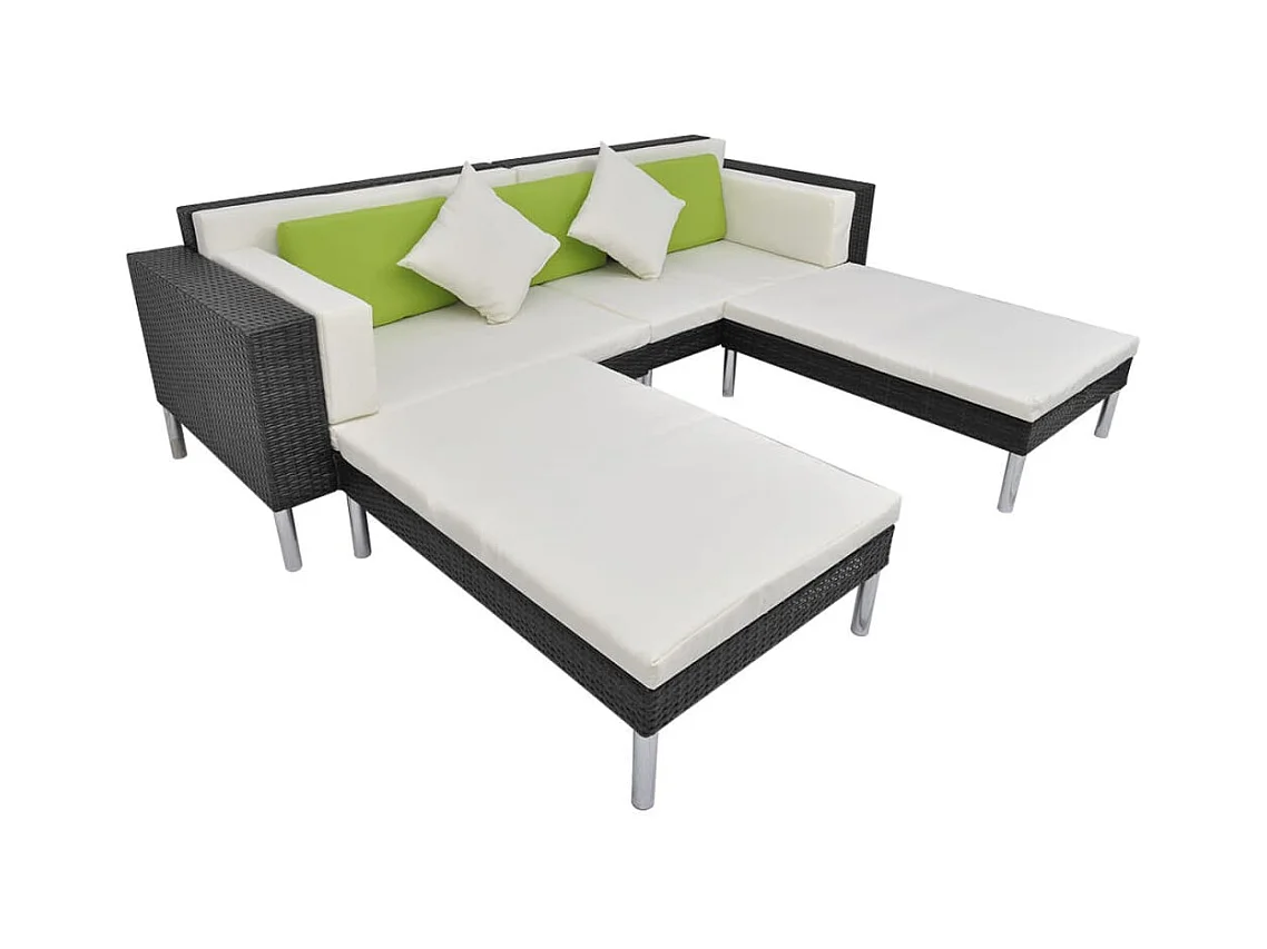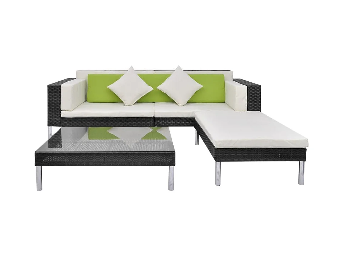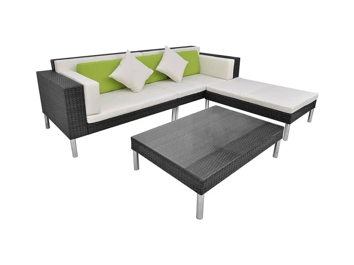 4 peças conjunto lounge de jardim c/ almofadões vime PE preto
