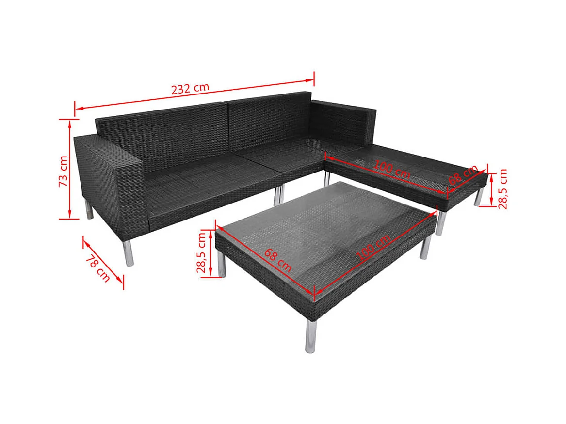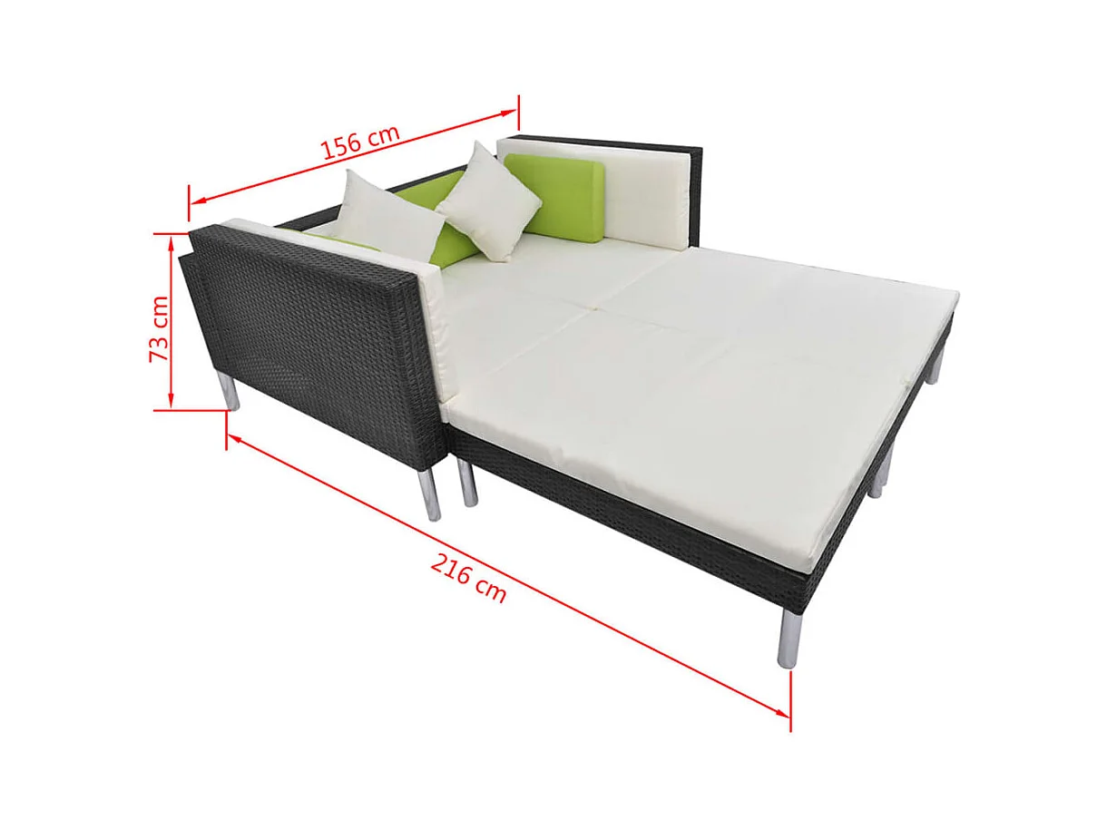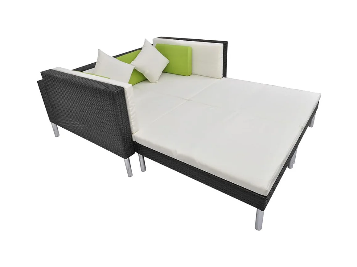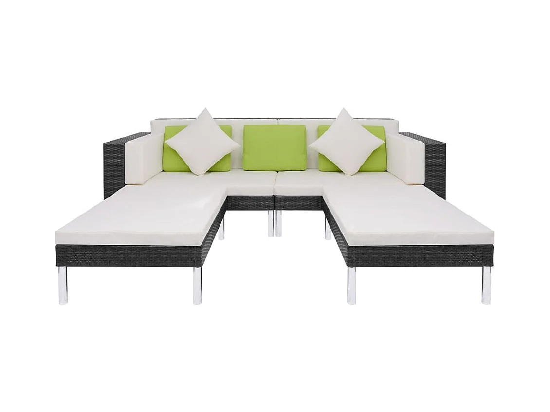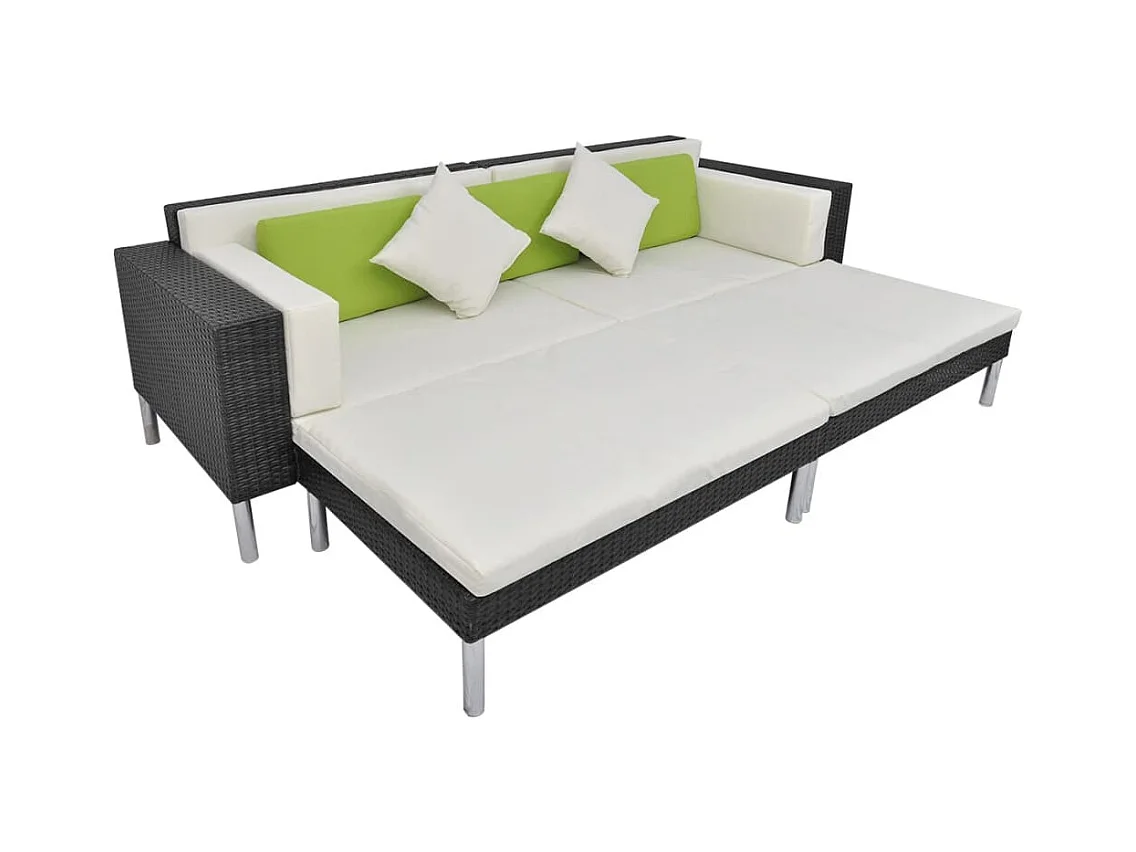 4 peças conjunto lounge de jardim c/ almofadões vime PE preto