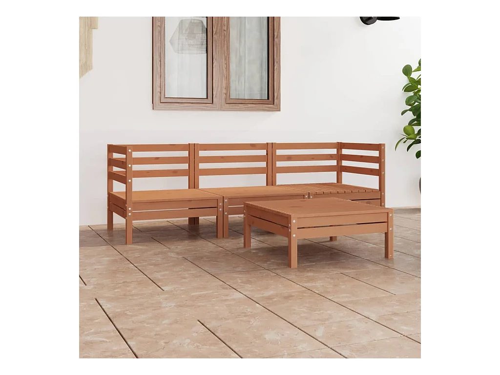 4 peças conjunto lounge de jardim pinho maciço castanho mel