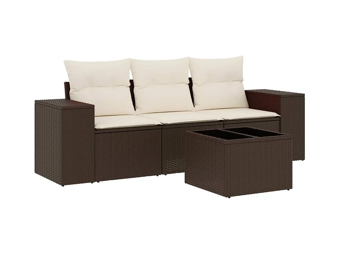 4 peças conjunto sofás de jardim com almofadões vime PE castanho