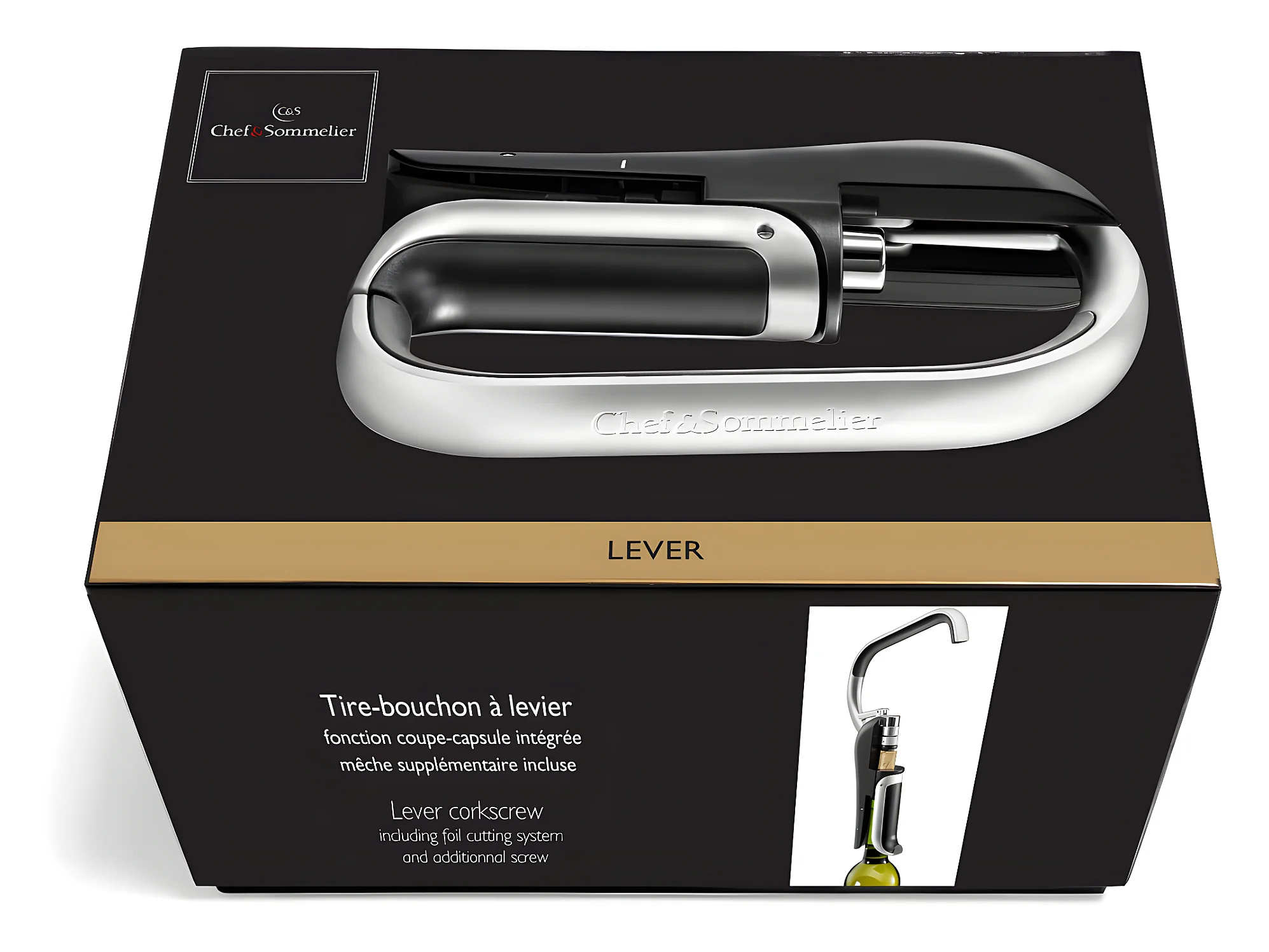 Abridor de vinho Chef & Sommelier com alavanca e cortador de cápsulas integrado em aço inoxidável - Prateado