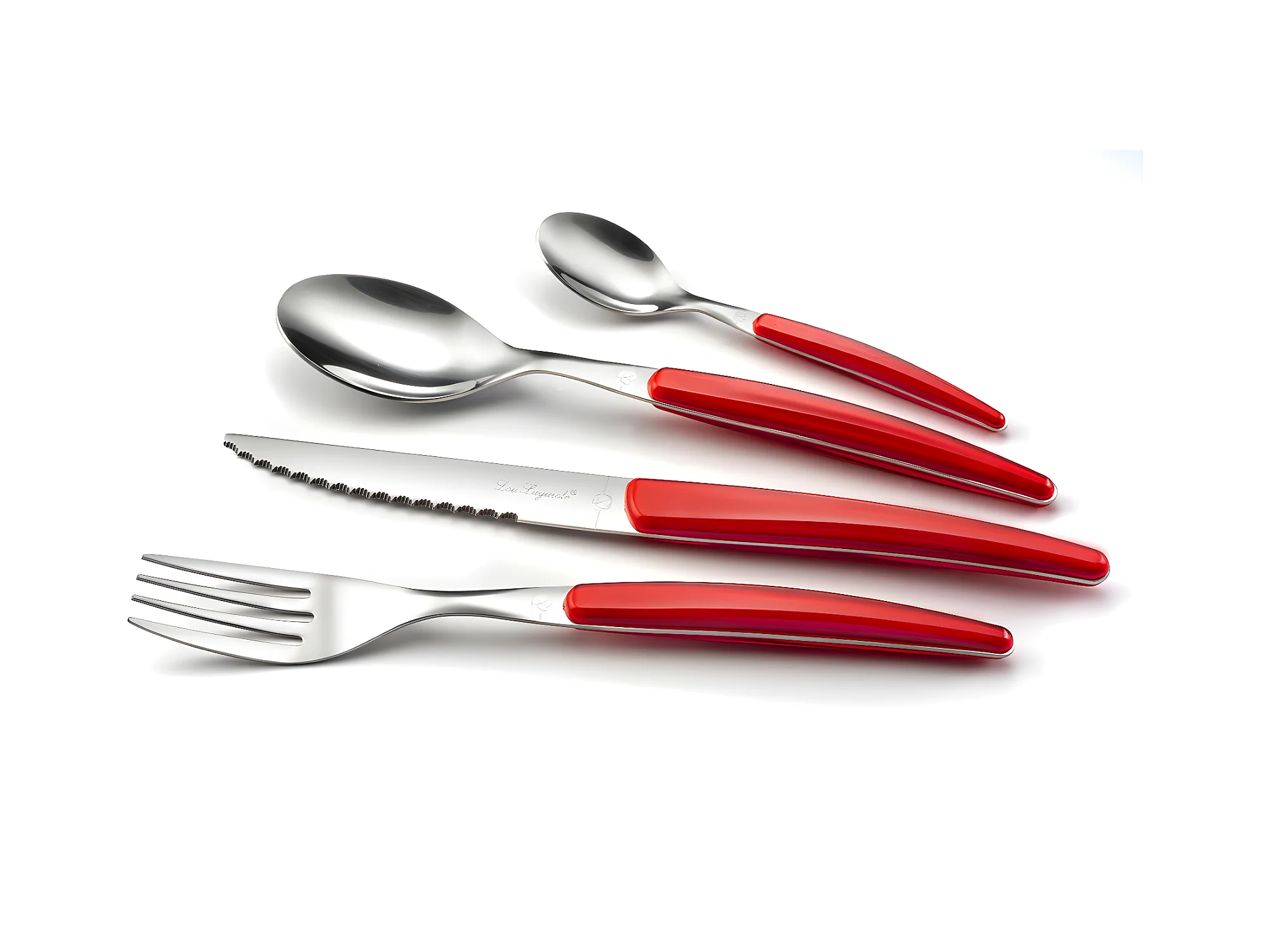Talheres Laguiole Tradition 24 peças Vermelho - Cabo em polipropileno - Lâmina microdentada em aço temperado