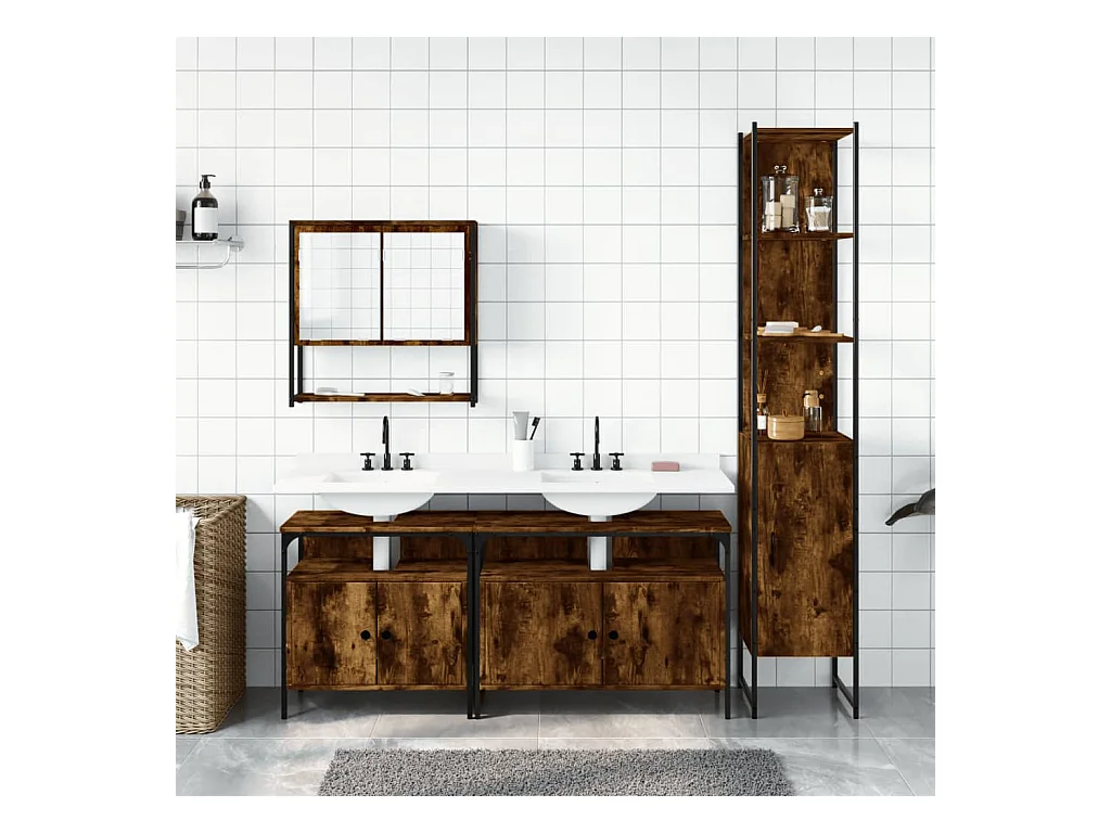 3 pcs conjunto de móveis WC madeira processada carvalho fumado PT777435