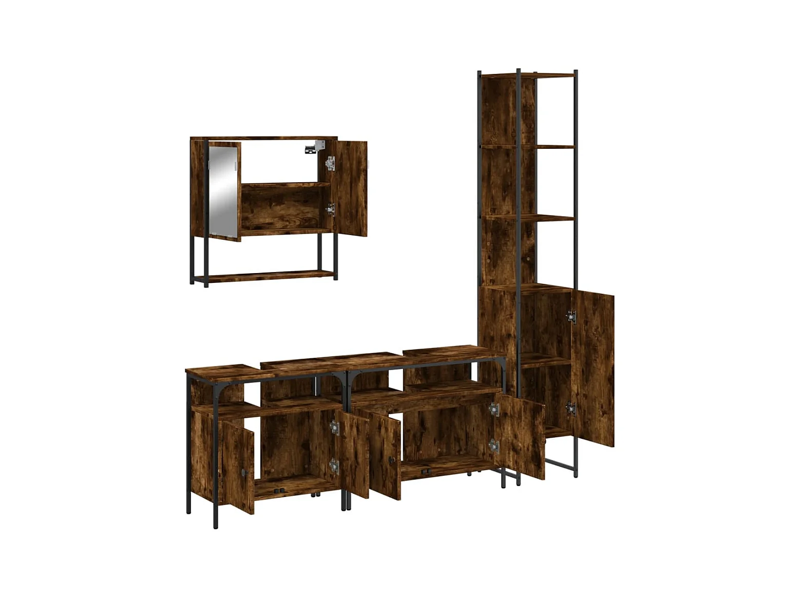 4pcs conjunto de móveis WC derivados de madeira carvalho fumado PT714171