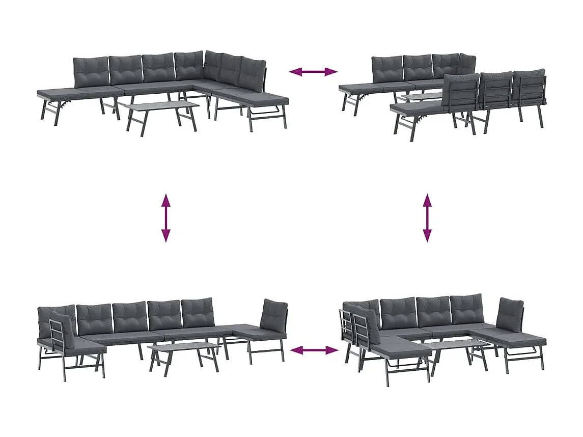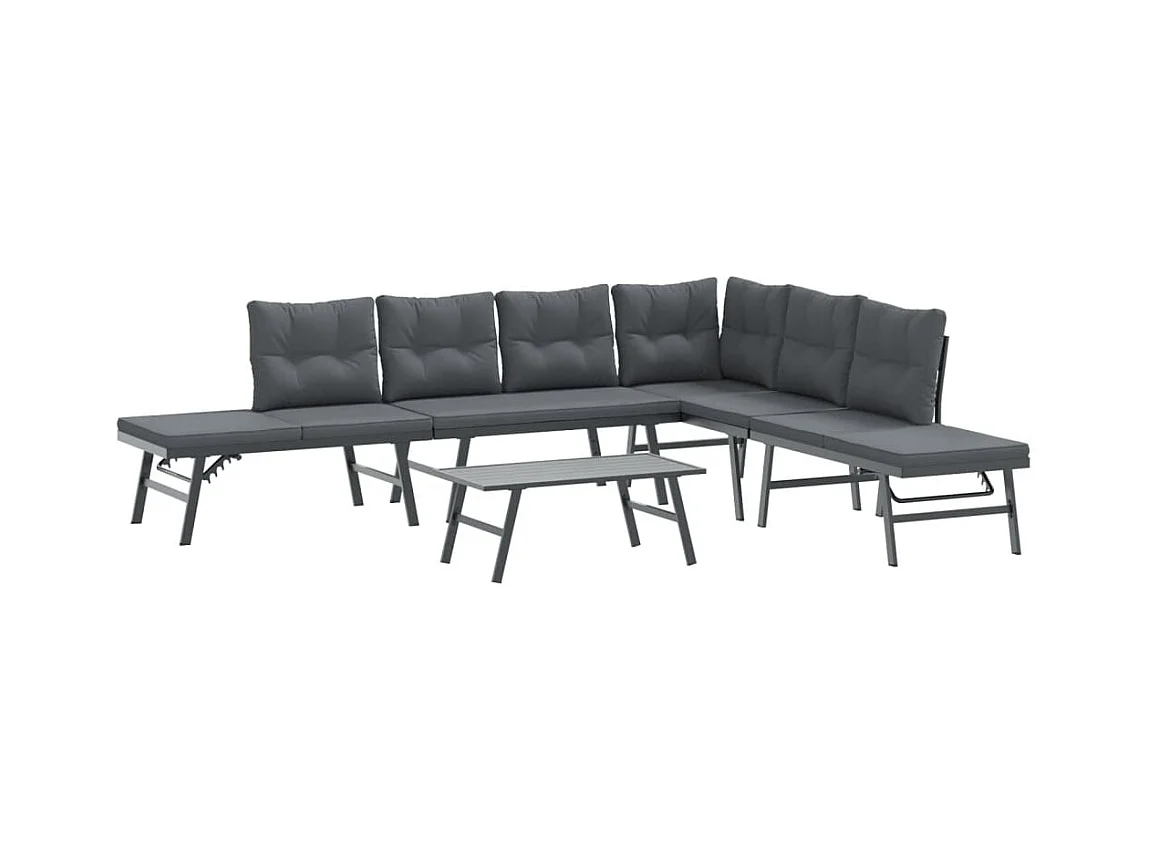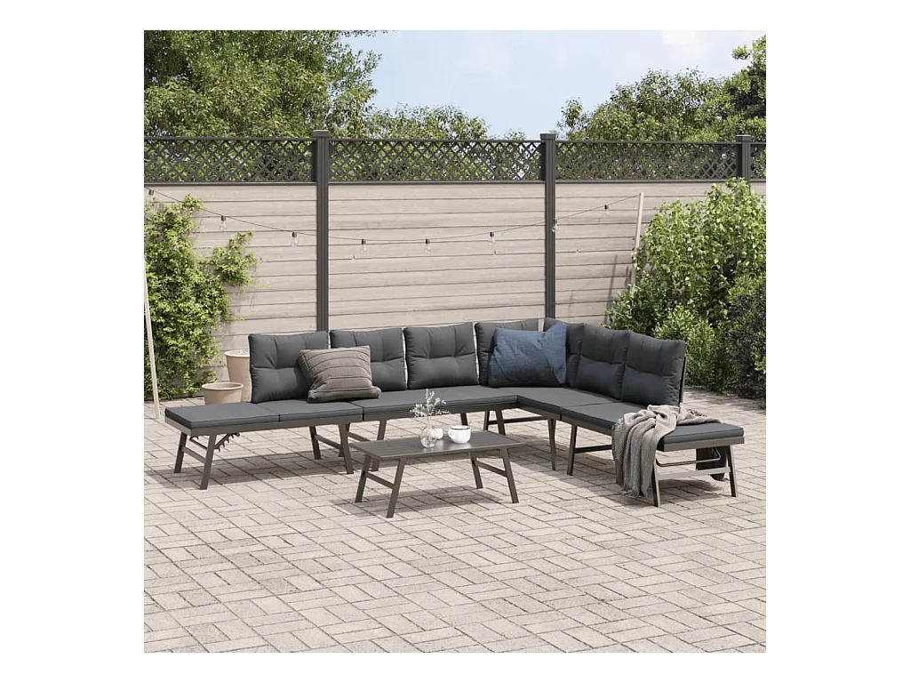7 pcs bancos de jardim com almofadões aço revestido a pó preto