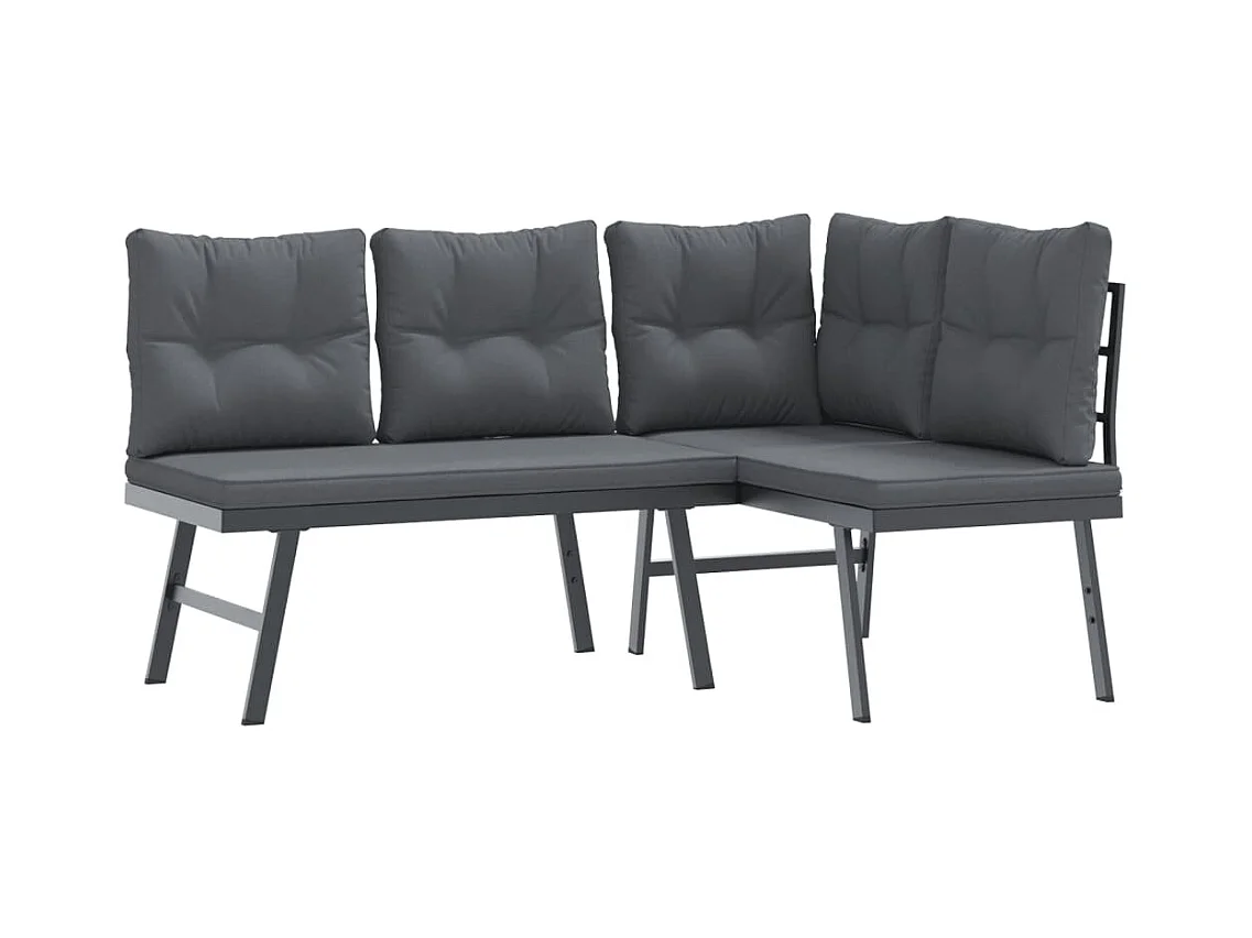 3 pcs bancos de jardim com almofadões aço revestido a pó preto