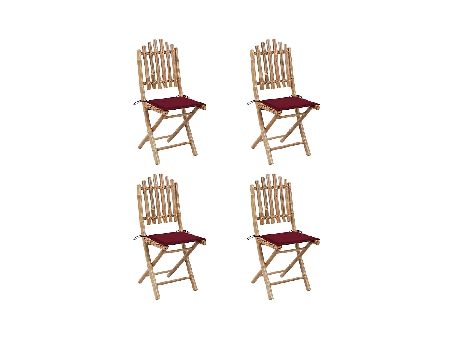 5 pcs conj. de jantar dobrável c/ almofadões p/ exterior bambu PT116342