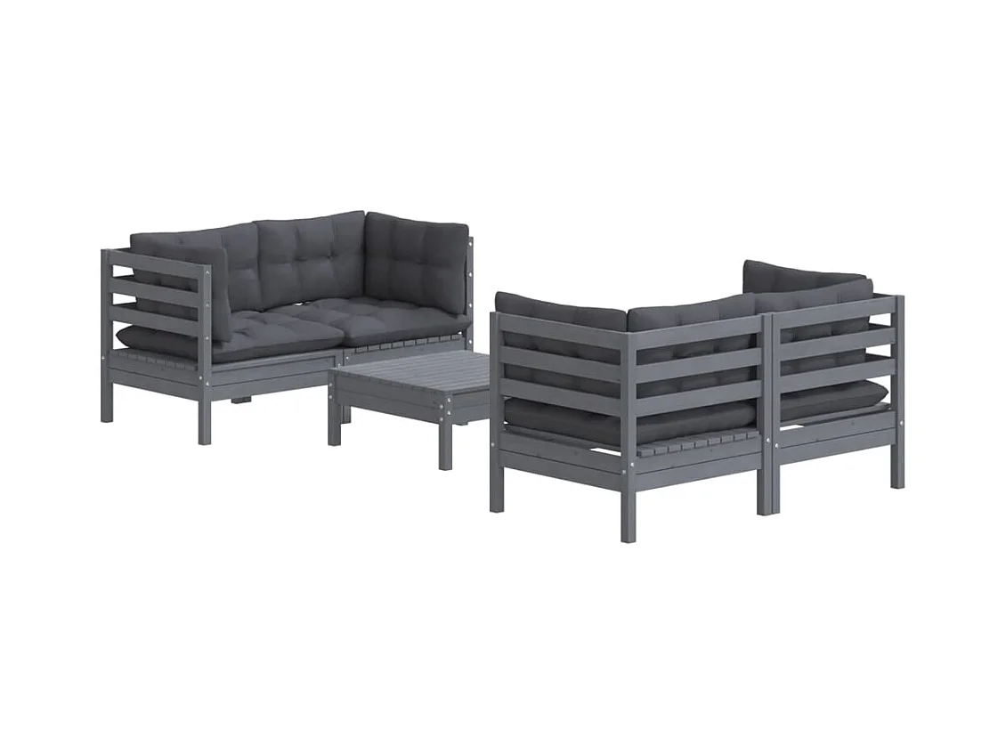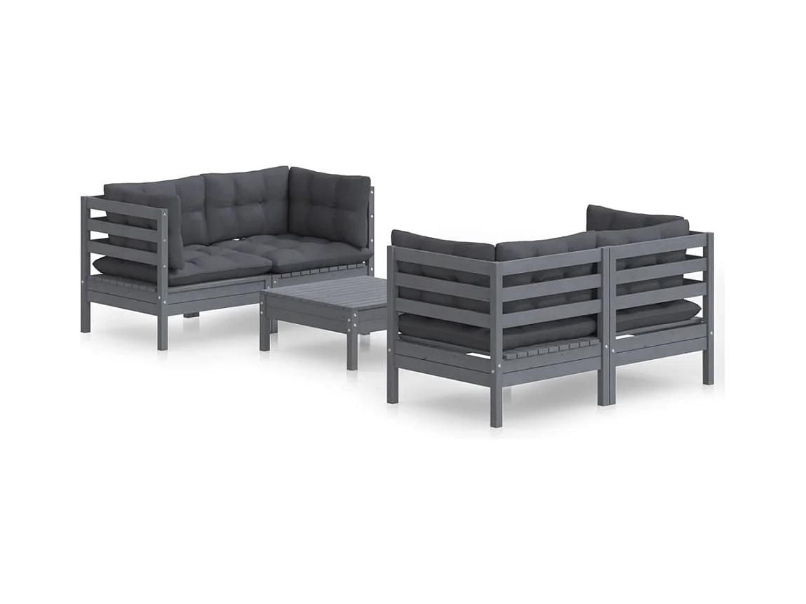 5 pcs conj. lounge de jardim com almofadões antracite pinho PT119316