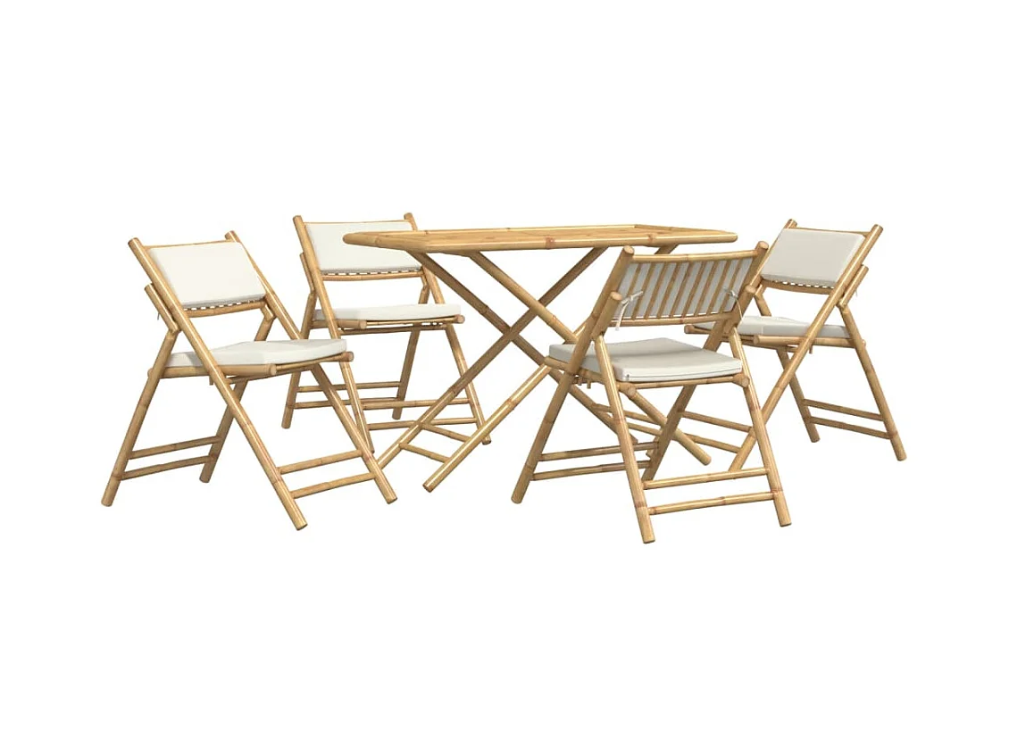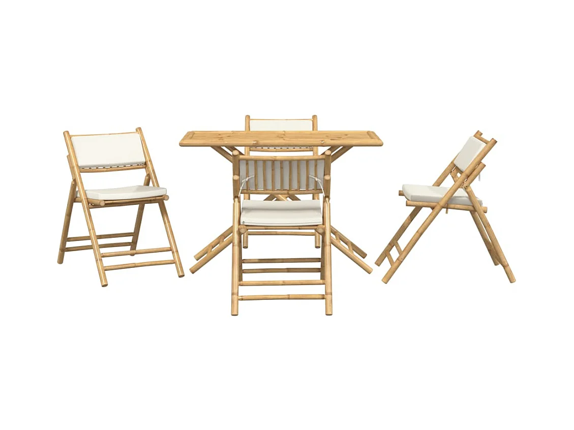 5 pcs conjunto bistrô dobrável c/ almofadões branco nata bambu PT640368