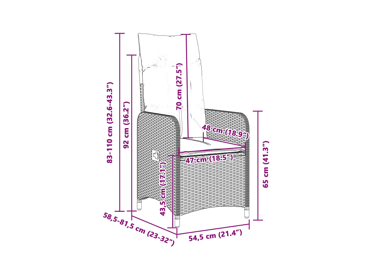 9 pcs conjunto de bistrô para jardim c/ almofadões vime PE bege