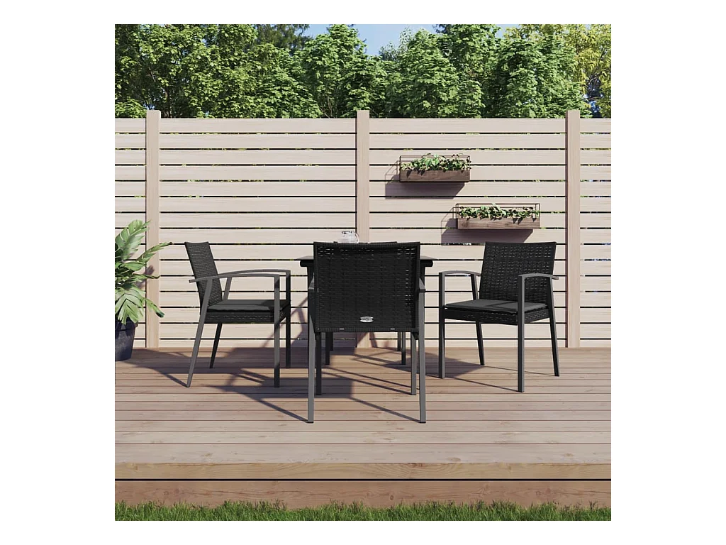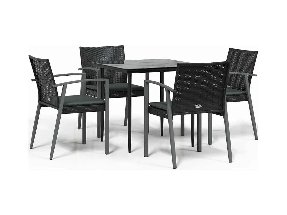 5 pcs conjunto de jantar p/ jardim c/ almofadões vime PE e aço PT983286
