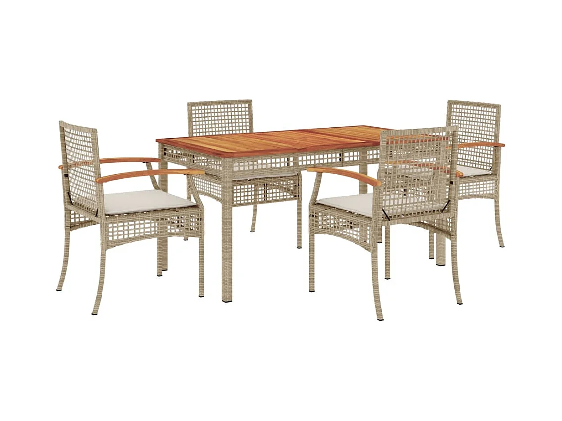 5 pcs conjunto de jantar p/ jardim com almofadões vime PE bege PT197069