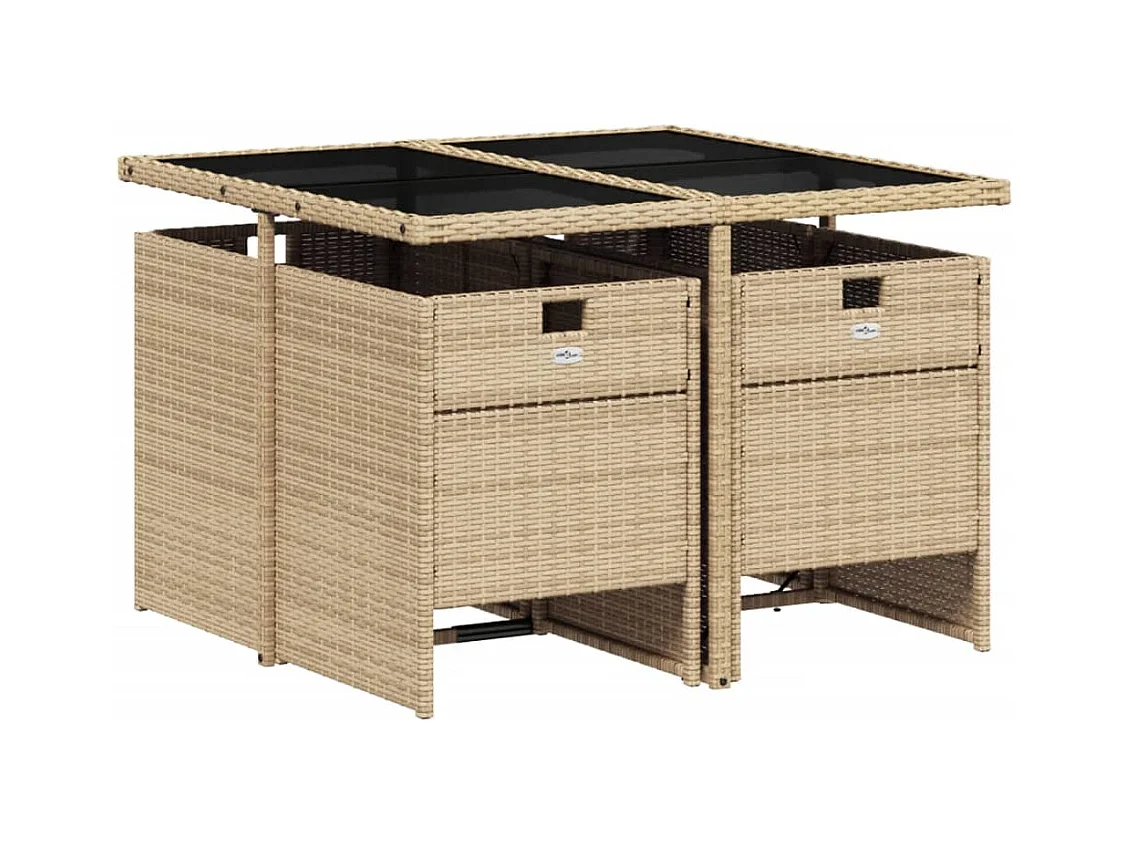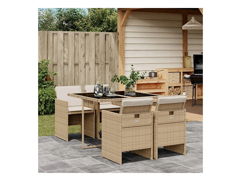 5pcs conj. jantar jardim c/ almofadões vime PE bege misturado PT910517