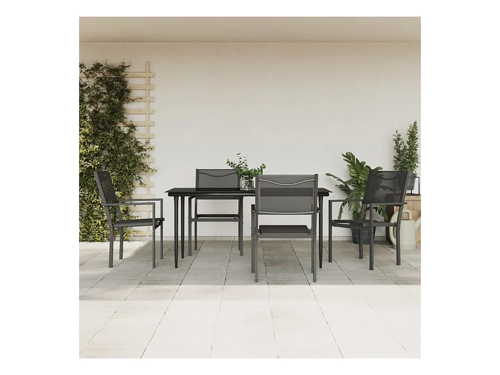 5 pcs conjunto de jantar para jardim aço e textilene preto