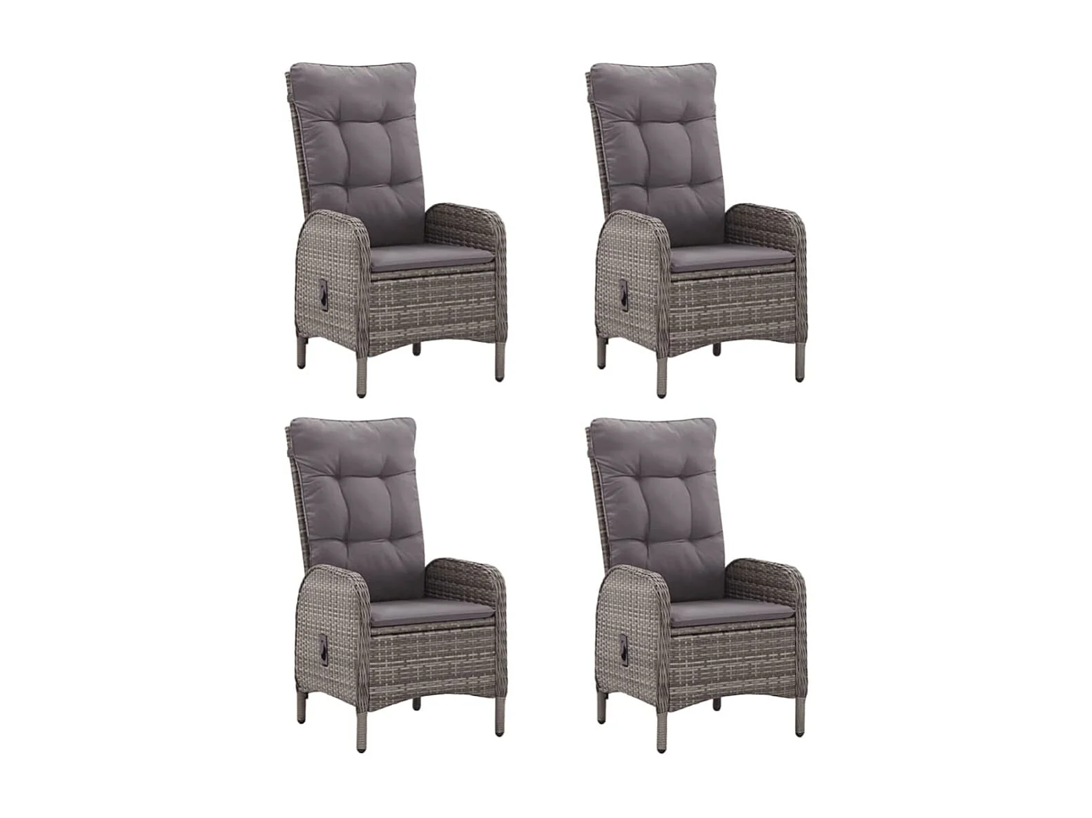 4 pcs conjunto de jantar p/ jardim c/ almofadões vime PE cinza