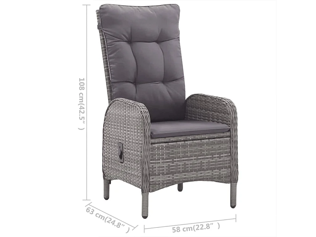 5 pcs conjunto de jantar p/ jardim c/ almofadões vime PE cinza