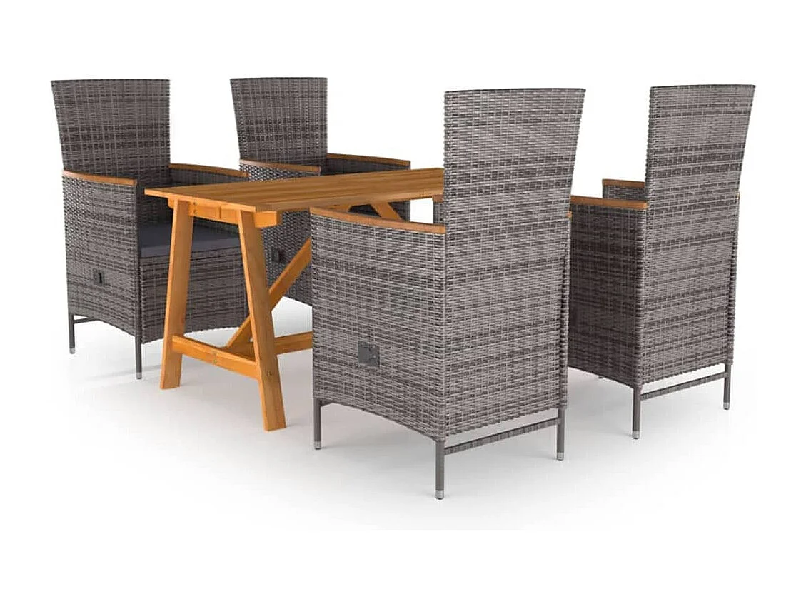 5 pcs conjunto bistrô de jardim vime PE/acácia maciça cinzento PT933568