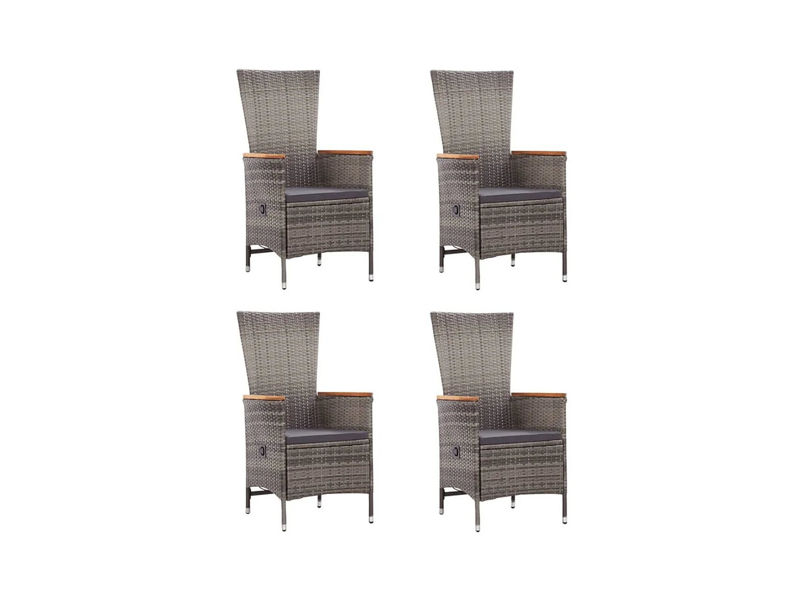 4 pcs conjunto de jantar p/ jardim c/ almofadões vime PE cinza