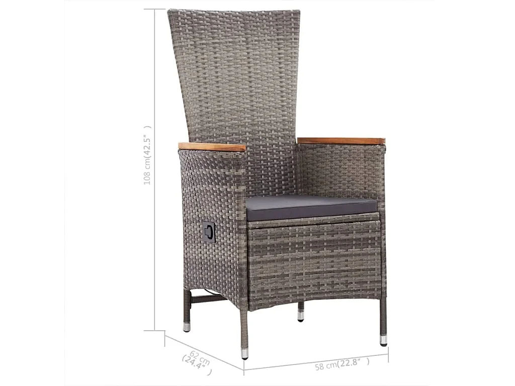 5 pcs conjunto de jantar p/ jardim c/ almofadões vime PE cinza