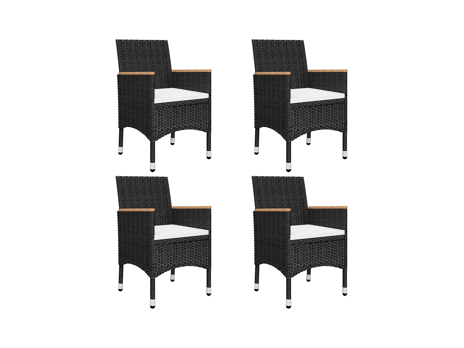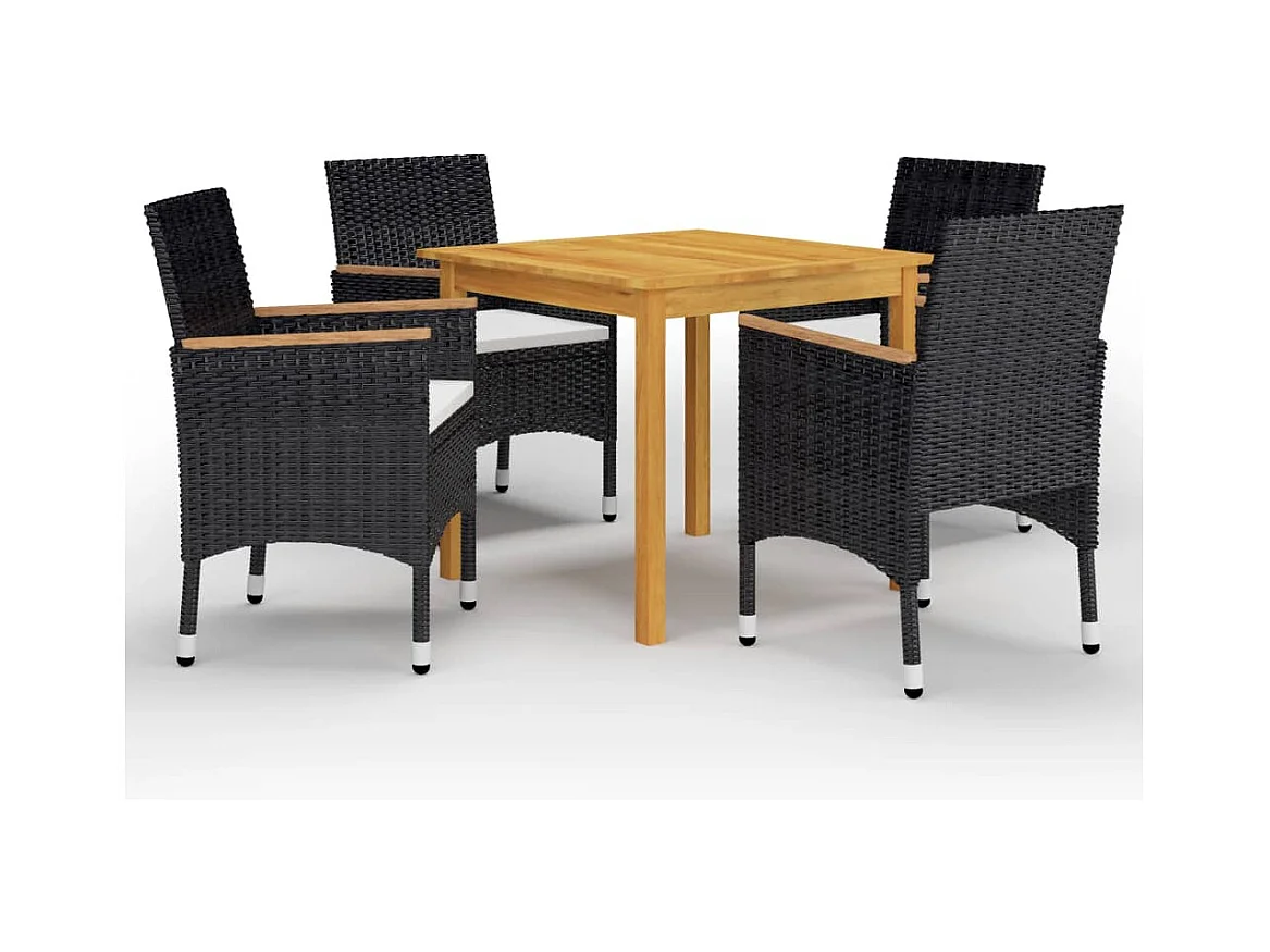 5 pcs conjunto de jantar p/ jardim vime PE/madeira maciça preto PT503429