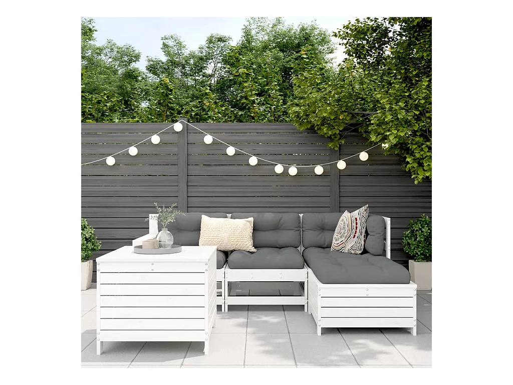 5 pcs conjunto de sofás de jardim madeira pinho maciça branco PT177194