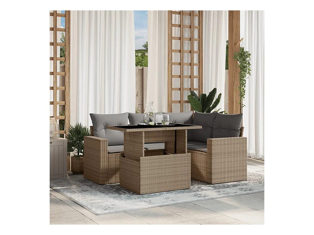 5 pcs conjunto de sofás p/ jardim com almofadões vime PE bege