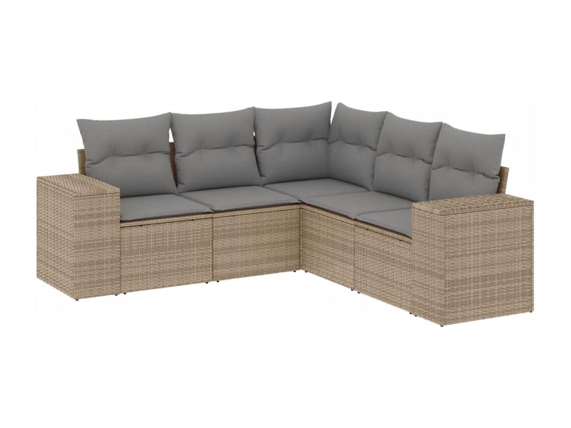 5 pcs conjunto de sofás p/ jardim com almofadões vime PE bege PT111511