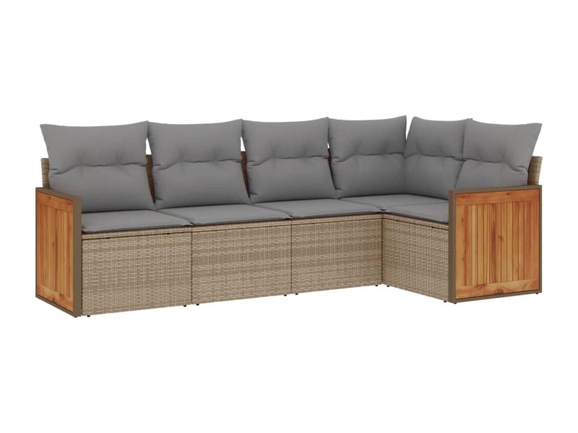 5 pcs conjunto de sofás p/ jardim com almofadões vime PE bege PT823919